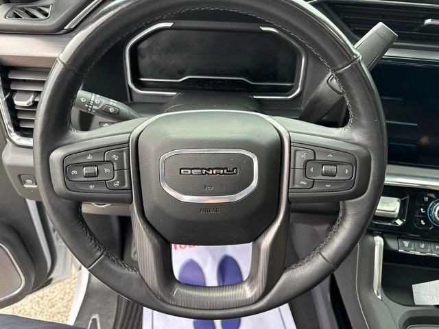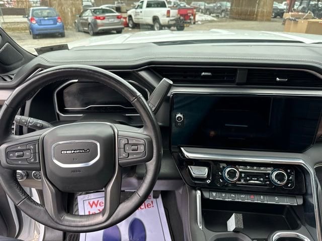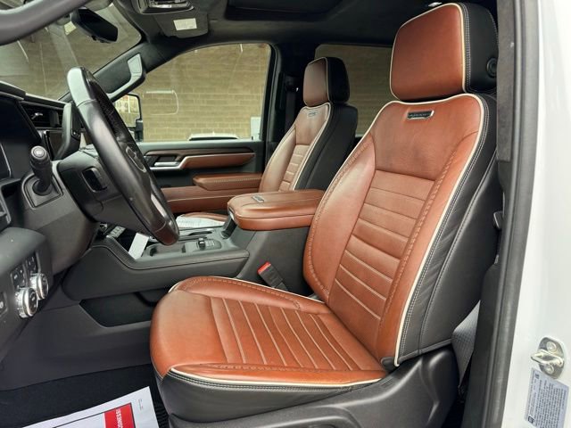 12 Speakers, 120-Volt Bed Mounted Power Outlet, 120-Volt Instrument Panel Power Outlet, 16-Way Power Driver Seat Adjuster w/Lumbar, 16-Way Power Passenger Seat Adjuster w/Lumbar, 2 Charge-Only Rear USB Ports, 2 Charge/Data USB Ports Inside Center Console, 2 USB Ports, 2-Speed Active Transfer Case, 220 Amp Alternator, 3.42 Rear Axle Ratio, 4-Wheel Disc Brakes, ABS brakes, Air Conditioning, Alloy wheels, AM/FM radio: SiriusXM with 360L, Apple CarPlay/Android Auto, Auto High-beam Headlights, Auto-dimming door mirrors, Auto-Dimming Inside Rearview Mirror w/Camera, Auto-dimming Rear-View mirror, Automatic Emergency Braking, Automatic temperature control, Bed View Camera w/2 Trailer Camera Provisions, Block heater, Body Color Wheel Arch Moldings (LPO), Bose Premium Series 12-Speaker System, Brake assist, Buckle to Drive, Bumpers: body-color, Compass, Deep-Tinted Glass, Delay-off headlights, Driver door bin, Driver Memory, Driver vanity mirror, Dual front impact airbags, Dual front side impact airbags, Dual Heavy-Duty 70 Amp-Hr Battery, Electric Rear-Window Defogger, Electronic Stability Control, Emergency communication system: OnStar and GMC connected services capable, Floor-Mounted Center Console, Following Distance Indicator, Forward Collision Alert, Front anti-roll bar, Front Bucket Seats, Front Center Armrest, Front dual zone A/C, Front fog lights, Front License Plate Kit, Front Pedestrian Braking, Front Rain-Sensing Wipers, Front reading lights, Front wheel independent suspension, Full Grain Leather Seat Trim, Fully automatic headlights, Garage door transmitter, Genuine wood dashboard insert, Genuine wood door panel insert, GMC Premium 13.4 Diagonal Information Display, Gooseneck/5th Wheel Prep Package, HD Surround Vision, Heads-Up Display, Heated 2nd Row Outboard Seats, Heated door mirrors, Heated Driver & Front Outboard Passenger Seats, Heated front seats, Heated rear seats, Heated steering wheel, High Idle Switch, Hill Descent Control, Hitch Guidance w/Hitch View, Illuminated entry, In-Vehicle Trailering App, Integrated Trailer Brake Controller, IntelliBeam Automatic High Beam On/Off, Keyless Open & Start, Lane Departure Warning System, Leather steering wheel, LED Cargo Area Lighting, LED Smoked Amber Roof Marker Lamps, Low tire pressure warning, Manual Tilt-Wheel/Telescoping Steering Column, Memory seat, Multicolor 15 Diagonal Head-Up Display, Occupant sensing airbag, Off-Road Suspension, Outside temperature display, Overhead airbag, Overhead console, Panic alarm, Passenger door bin, Passenger vanity mirror, Pickup Bed, Power door mirrors, Power driver seat, Power Front Windows w/Passenger Express Up/Down, Power moonroof, Power passenger seat, Power Sliding Rear Window w/Defogger, Power steering, Power Sunroof, Power windows, Preferred Equipment Group 5SB, Premium audio system: Premium GMC Infotainment System, ProGrade Trailering System, Push Button Start, Radio: AM/FM w/Premium GMC Infotainment System, Rain sensing wipers, Rear Cross Traffic Alert, Rear reading lights, Rear seat center armrest, Rear step bumper, Rear Wheelhouse Liners, Rear window defroster, Remote keyless entry, Remote Vehicle Starter System, Safety Alert Seat, Security system, Signature Denali Grille in Vader Chrome, SiriusXM w/360L, Speed control, Speed-sensing steering, Split folding rear seat, Spray-On Pickup Bedliner w/Denali Logo, Steering Wheel Audio Controls, Steering wheel mounted audio controls, Tachometer, Technology Package, Telescoping steering wheel, Tilt steering wheel, Traction control, Trailer Camera Provisions, Trailer Side Blind Zone Alert, Trailer Tire Pressure Monitor Sensors, Trip computer, Turn signal indicator mirrors, Ultrasonic Front & Rear Park Assist, Unauthorized Entry Theft-Deterrent System, Univers