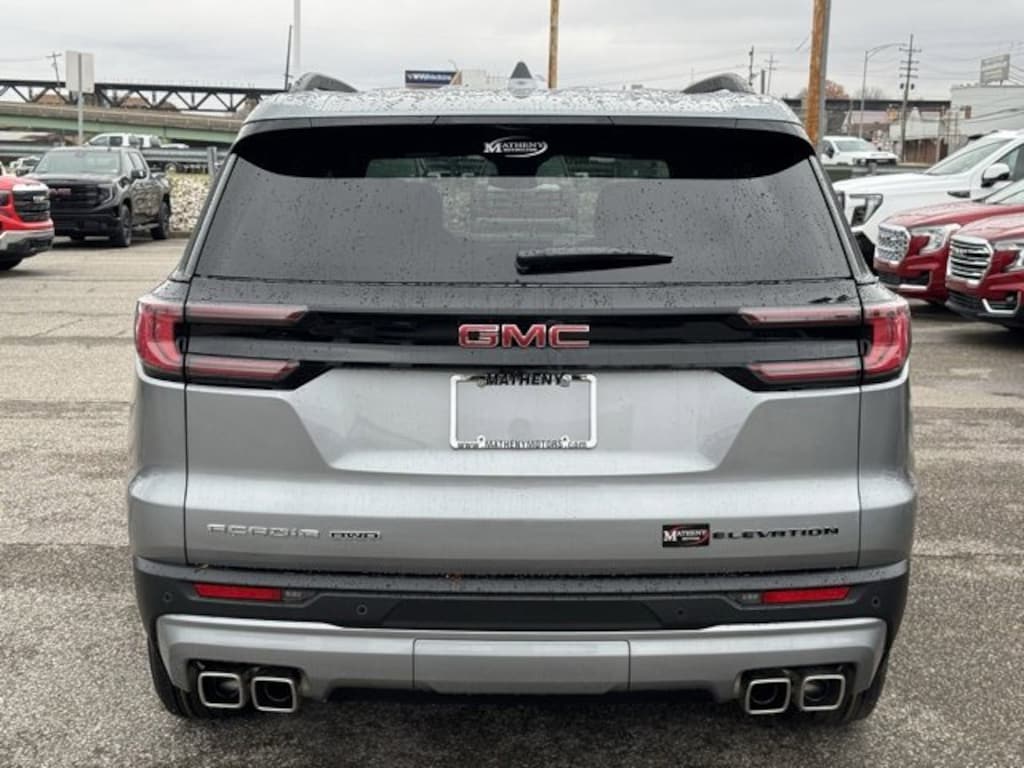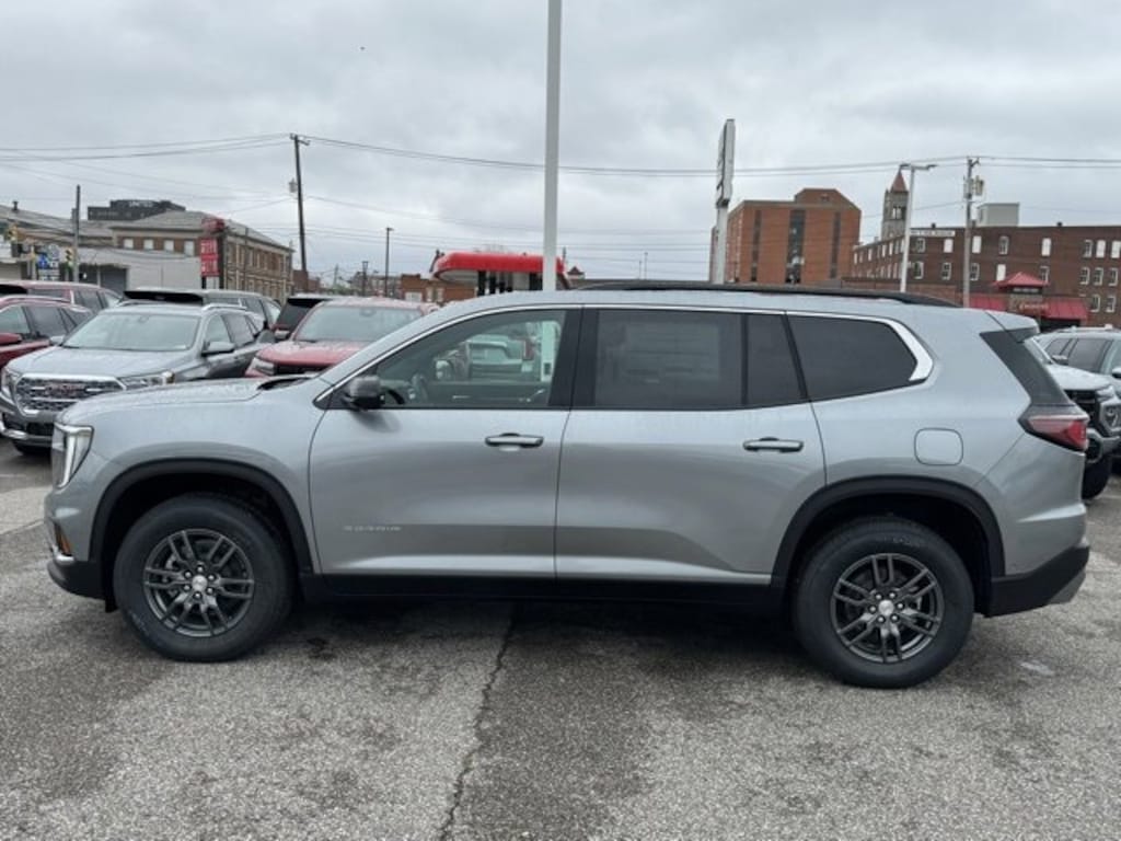 Sterling Metallic 2025 GMC Acadia Elevation AWD 8-Speed Automatic 2.5L DOHC 12 Speakers, 18 x 7.5 Aluminum Wheels, 1st & 2nd Row All-Weather Floor Liner (LPO), 2-Way Driver Power Lumbar Seat Adjuster, 3 Years of OnStar Digital Services, 3.49 Final Drive Axle Ratio, 3rd Row All-Weather Floor Liner (LPO), 3rd row seats: split-bench, 4-Way Manual Front Passenger Seat Adjuster, 4-Wheel Disc Brakes, 7-Passenger Seating (2-2-3 Seating Configuration), 8-Passenger Seating (2-3-3 Seating Configuration), 8-Way Power Driver Seat Adjuster, ABS brakes, Air Conditioning, Alloy wheels, AM/FM radio: SiriusXM with 360L, Apple CarPlay/Android Auto, Auto High-beam Headlights, Auto-dimming Rear-View mirror, Automatic temperature control, Bodyside moldings, Bose Premium 12-Speaker System w/Sub-Woofer, Brake assist, Bumpers: body-color, Cloth Seat Trim, Compass, Delay-off headlights, Driver Attention Assist, Driver door bin, Driver vanity mirror, Dual front impact airbags, Dual front side impact airbags, Electronic Stability Control, Emergency communication system: OnStar Services capable, Enhanced Automatic Parking Assist, Exterior Parking Camera Rear, Floor Liner Package (LPO), Four wheel independent suspension, Front anti-roll bar, Front Bucket Seats, Front Center Armrest, Front dual zone A/C, Front fog lights, Front reading lights, Fully automatic headlights, Heated door mirrors, Heated Driver & Front Passenger Seats, Heated front seats, Heated steering wheel, Illuminated entry, Leather steering wheel, Low tire pressure warning, Navigation System, Occupant sensing airbag, Outside temperature display, Overhead airbag, Overhead console, Panic alarm, Passenger door bin, Passenger vanity mirror, Power door mirrors, Power driver seat, Power Liftgate, Power steering, Power windows, Preferred Equipment Group 4SD, Radio data system, Radio: 15 Premium GMC Infotainment System, Rear air conditioning, Rear anti-roll bar, Rear reading lights, Rear seat center armrest, Rear side impact airbag, Rear window defroster, Rear window wiper, Remote keyless entry, Security system, SiriusXM w/360L, Speed control, Speed-sensing steering, Split folding rear seat, Spoiler, Sport steering wheel, Steering wheel mounted audio controls, Super Cruise, Super Cruise Package, Tachometer, Telescoping steering wheel, Tilt steering wheel, Traction control, Trip computer, Turn signal indicator mirrors, Variably intermittent wipers, Voltmeter.