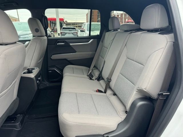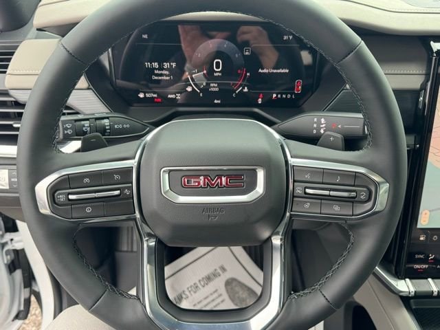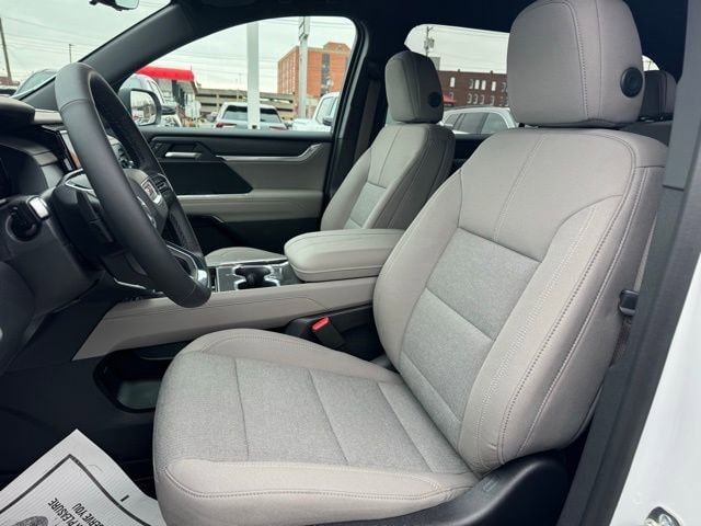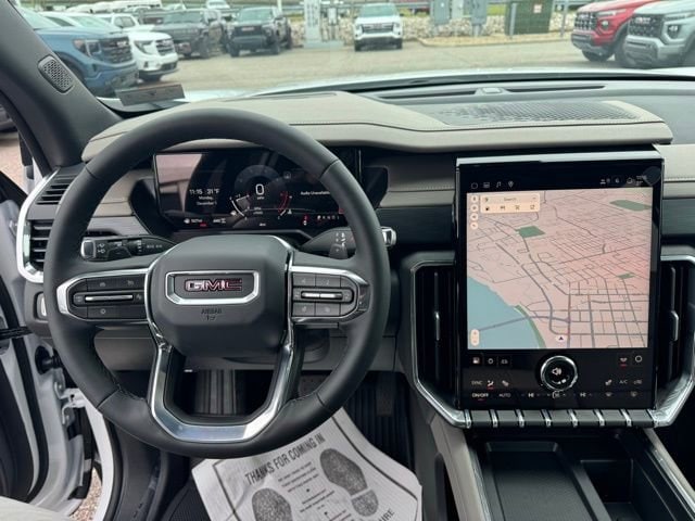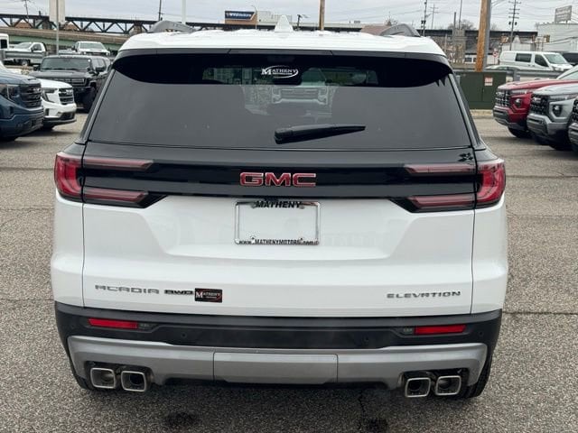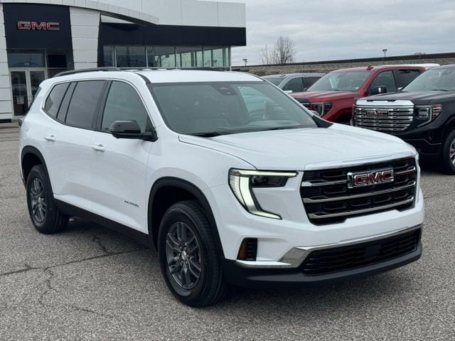 Summit White 2026 GMC Acadia Elevation AWD 8-Speed Automatic 2.5L DOHC 12 Speakers, 18 x 7.5 Aluminum Wheels, 1st & 2nd Row All-Weather Floor Liner (LPO), 3.49 Final Drive Axle Ratio, 3rd Row All-Weather Floor Liner (LPO), 3rd row seats: split-bench, 4-Way Manual Front Passenger Seat Adjuster, 4-Wheel Disc Brakes, 8-Passenger Seating (2-3-3 Seating Configuration), 8-Way Power Driver Seat Adjuster, ABS brakes, Air Conditioning, Alloy wheels, AM/FM radio: SiriusXM with 360L, Apple CarPlay/Android Auto, Auto High-beam Headlights, Automatic temperature control, Bodyside moldings, Bose Premium 12-Speaker System w/Sub-Woofer, Brake assist, Bumpers: body-color, Cloth Seat Trim, Compass, Delay-off headlights, Driver 2-Way Power Lumbar Seat Adjuster, Driver door bin, Driver vanity mirror, Dual front impact airbags, Dual front side impact airbags, Electronic Stability Control, Emergency communication system: OnStar Services capable, Exterior Parking Camera Rear, Floor Liner Package (LPO), Four wheel independent suspension, Front anti-roll bar, Front Bucket Seats, Front Center Armrest, Front dual zone A/C, Front fog lights, Front reading lights, Fully automatic headlights, Heated door mirrors, Heated Driver & Front Passenger Seats, Heated front seats, Heated steering wheel, Illuminated entry, Integrated Cargo Liner (LPO), Leather steering wheel, Low tire pressure warning, Navigation System, Occupant sensing airbag, Outside temperature display, Overhead airbag, Overhead console, Panic alarm, Passenger door bin, Passenger vanity mirror, Power door mirrors, Power driver seat, Power Liftgate, Power steering, Power windows, Preferred Equipment Group 4SD, Radio data system, Radio: 15 Premium GMC Infotainment System, Rear air conditioning, Rear anti-roll bar, Rear reading lights, Rear seat center armrest, Rear side impact airbag, Rear window defroster, Rear window wiper, Remote keyless entry, Security system, SiriusXM w/360L, Speed control, Speed-sensing steering, Split folding rear seat, Spoiler, Sport steering wheel, Steering wheel mounted audio controls, Tachometer, Telescoping steering wheel, Tilt steering wheel, Traction control, Trip computer, Turn signal indicator mirrors, Variably intermittent wipers, Voltmeter.