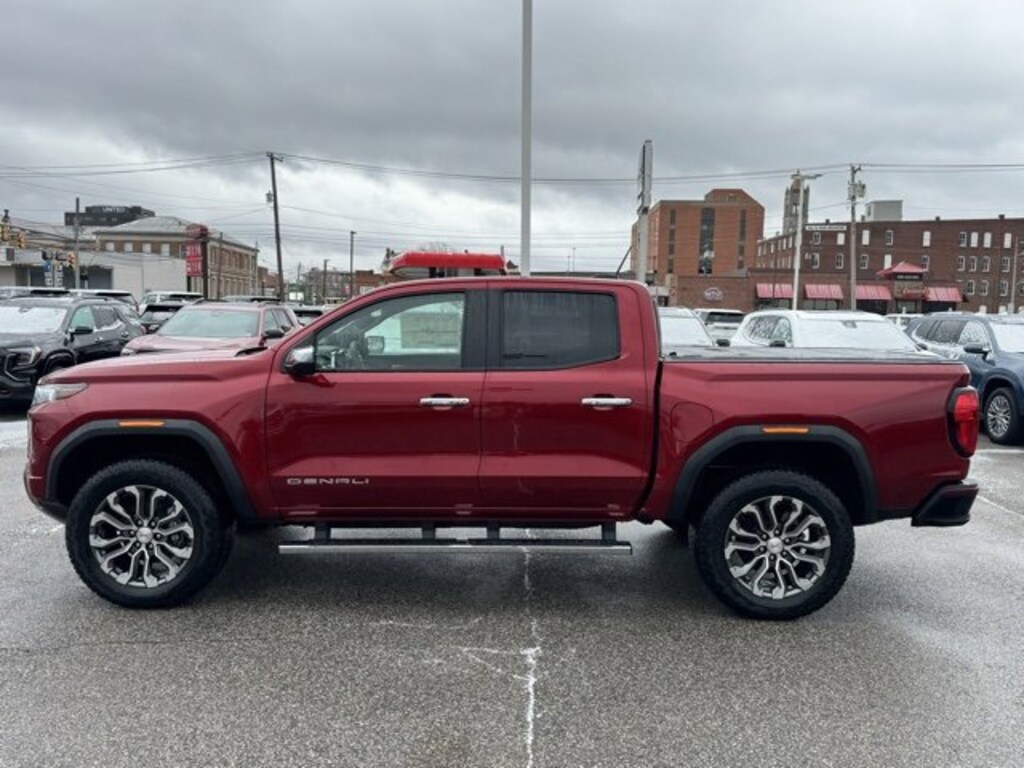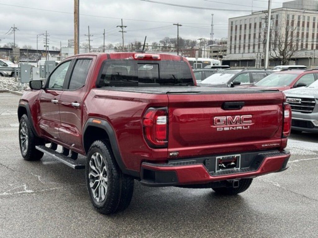 Volcanic Red Tintcoat 2026 GMC Canyon Denali 4WD 8-Speed Automatic 2.7L I4 Turbocharged DOHC 16V LEV3-SULEV30 310hp 120-Volt Bed Mounted Power Outlet, 1st and 2nd Rows All-Weather Floor Liner, 2 1st Row USB Charge/Data Ports, 2 Rear USB Ports in Center Console (Charge-Only), 3.42 Rear Axle Ratio, 4-Wheel Disc Brakes, 5 Rectangular Chrome Assist Steps, 6-Way Power Passenger Seat Adjuster, 7 Speakers, 8-Way Power Driver Seat Adjuster, ABS brakes, Adaptive Cruise Control, Air Conditioning, Alloy wheels, AM/FM radio: SiriusXM with 360L, Apple CarPlay/Android Auto, Auto High-beam Headlights, Auto-dimming Rear-View mirror, Automatic Emergency Braking, Automatic Stop/Start, Automatic temperature control, Blind Zone Steering Assist with Trailering, Brake assist, Bumpers: body-color, Canyon Pro Safety, Canyon Safety Plus Package, Compass, Delay-off headlights, Driver and Front Passenger Illuminated Visors, Driver and Front Passenger Ventilated Seats, Driver door bin, Driver Memory, Driver Mode Selector, Driver Seatback Map Pocket, Driver vanity mirror, Dual front impact airbags, Dual front side impact airbags, Dual-Zone Automatic Climate Control Air Conditioning, Electronic Stability Control, Emergency communication system: OnStar, EZ-Lift and Lower Tailgate, Following Distance Indicator, Forward Collision Alert, Front anti-roll bar, Front Bucket Seats, Front Center Armrest, Front dual zone A/C, Front fog lights, Front LED Fog Lamps, Front Passenger Seatback Map Pocket, Front Pedestrian and Bicyclist Braking, Front reading lights, Front wheel independent suspension, Genuine wood dashboard insert, Genuine wood door panel insert, Hard Folding Truck Bed Cover, HD Surround Vision, Heads-Up Display, Heated door mirrors, Heated Driver and Front Passenger Seats, Heated front seats, Heated Steering Wheel, Heated steering wheel, Illuminated entry, Inside Rear-View Auto-Dimming Mirror, IntelliBeam Automatic High Beam on/Off, Interior Overhead Courtesy Light with Dual Reading Lamp, Lane Keep Assist with Lane Departure Warning, Low tire pressure warning, Memory seat, Multicolor 6.3 Diagonal Head-Up Display, MultiStow Tailgate Storage Compartment, Navigation System, Occupant sensing airbag, Off-Road Suspension, Outside temperature display, Overhead airbag, Overhead console, Panic alarm, Passenger door bin, Passenger vanity mirror, Perforated Leather-Appointed Seat Trim, Power door mirrors, Power Driver Lumbar Control Seat Adjuster, Power driver seat, Power Inner Sliding Glass Sunroof with Manual Shade, Power Passenger Lumbar Control Seat Adjuster, Power passenger seat, Power steering, Power windows, Preferred Equipment Group 5SB, Premium 7-Speaker Bose Sound System, Radio data system, Radio: 11.3 Diagonal Premium GMC Infotainment System, Rear Center Fold-Down Armrest with 2 Cupholders, Rear Cross Traffic Braking, Rear of Console 120-Volt Power Outlet, Rear Pedestrian Alert, Rear reading lights, Rear seat center armrest, Rear step bumper, Rear window defroster, Remote keyless entry, Remote Vehicle Starter System, Safety Alert Seat, Security system, SiriusXM with 360L, Speed control, Speed-sensing steering, Split folding rear seat, Spray-on Bedliner with GMC Logo, Steering wheel mounted audio controls, Stop/Start System Disable Button Engine Control, Tachometer, Tailgate Keyed Cylinder Lock, Telescoping steering wheel, Til and Telescopic Manual Steering Column, Tilt steering wheel, Traction control, Trip computer, Ultrasonic Rear Park Assist, Variably intermittent wipers, Ventilated front seats, Wheels: 20 x 9 Diamond Cut Dark Gray Aluminum, Wireless Apple CarPlay/Wireless Android Auto, Wireless Phone Charging.
