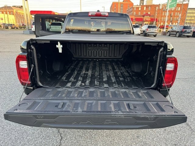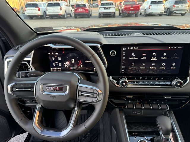 Onyx Black 2026 GMC Canyon Elevation 4WD 8-Speed Automatic 2.7L I4 Turbocharged DOHC 16V LEV3-SULEV30 310hp 1 Rear USB Port in Center Console (Charge-Only), 120-Volt Bed Mounted Power Outlet, 1st and 2nd Rows All-Weather Floor Liner, 2 1st Row USB Charge/Data Ports, 2 Rear USB Ports in Center Console (Charge-Only), 3 Years SiriusXM, 3.42 Rear Axle Ratio, 4-Way Manual Front Passenger Seat Adjuster, 4-Wheel Disc Brakes, 6 Speakers, 6-Speaker Audio System Feature, 6-Way Manual Driver Seat Adjuster, 8-Way Power Driver Seat Adjuster, ABS brakes, Adaptive Cruise Control, Air Conditioning, Alloy wheels, AM/FM radio: SiriusXM with 360L, Apple CarPlay/Android Auto, Auto High-beam Headlights, Automatic Emergency Braking, Automatic Stop/Start, Black Assist Steps, Blind Zone Steering Assist with Trailering, Brake assist, Bumpers: body-color, Canyon Pro Safety, Canyon Safety Plus Package, Cloth Seat Trim, Compass, Convenience Package, CoreTec Seat Trim, Delay-off headlights, Driver and Front Passenger Illuminated Visors, Driver door bin, Driver Mode Selector, Driver Seatback Map Pocket, Driver vanity mirror, Dual front impact airbags, Dual front side impact airbags, Dual-Zone Automatic Climate Control Air Conditioning, Electronic Stability Control, Elevation Premium Package, Emergency communication system: OnStar, EZ-Lift and Lower Tailgate, Following Distance Indicator, Forward Collision Alert, Front anti-roll bar, Front Bucket Seats, Front Center Armrest, Front LED Fog Lamps, Front Passenger Seatback Map Pocket, Front Pedestrian and Bicyclist Braking, Front wheel independent suspension, Hard Folding Truck Bed Cover, HD Surround Vision, Heated door mirrors, Heated Driver and Front Passenger Seats, Illuminated entry, Inside Rear-View Auto-Dimming Mirror, IntelliBeam Automatic High Beam on/Off, Interior Overhead Courtesy Light with Dual Reading Lamp, Lane Keep Assist with Lane Departure Warning, Low tire pressure warning, MultiStow Tailgate Storage Compartment, Navigation System, Occupant sensing airbag, Off-Road Suspension, Outside temperature display, Overhead airbag, Overhead console, Panic alarm, Passenger door bin, Passenger vanity mirror, Power door mirrors, Power Driver Lumbar Control Seat Adjuster, Power Inner Sliding Glass Sunroof with Manual Shade, Power steering, Power windows, Preferred Equipment Group 4VL, Preferred Package, Radio data system, Radio: 11.3 Diagonal Premium GMC Infotainment System, Rear Center Fold-Down Armrest with 2 Cupholders, Rear Cross Traffic Braking, Rear of Console 120-Volt Power Outlet, Rear Pedestrian Alert, Rear reading lights, Rear step bumper, Rear window defroster, Remote keyless entry, Remote Vehicle Starter System, Security system, SiriusXM with 360L, Speed control, Speed-sensing steering, Split folding rear seat, Spray-on Bedliner with GMC Logo, Steering wheel mounted audio controls, Stop/Start System Disable Button Engine Control, Tachometer, Tailgate Keyed Cylinder Lock, Technology Package, Til and Telescopic Manual Steering Column, Tilt steering wheel, Traction control, Trip computer, Ultrasonic Rear Park Assist, Variably intermittent wipers, Wheels: 18 x 8.5 Gloss Black Finish Aluminum, Wireless Apple CarPlay/Wireless Android Auto.