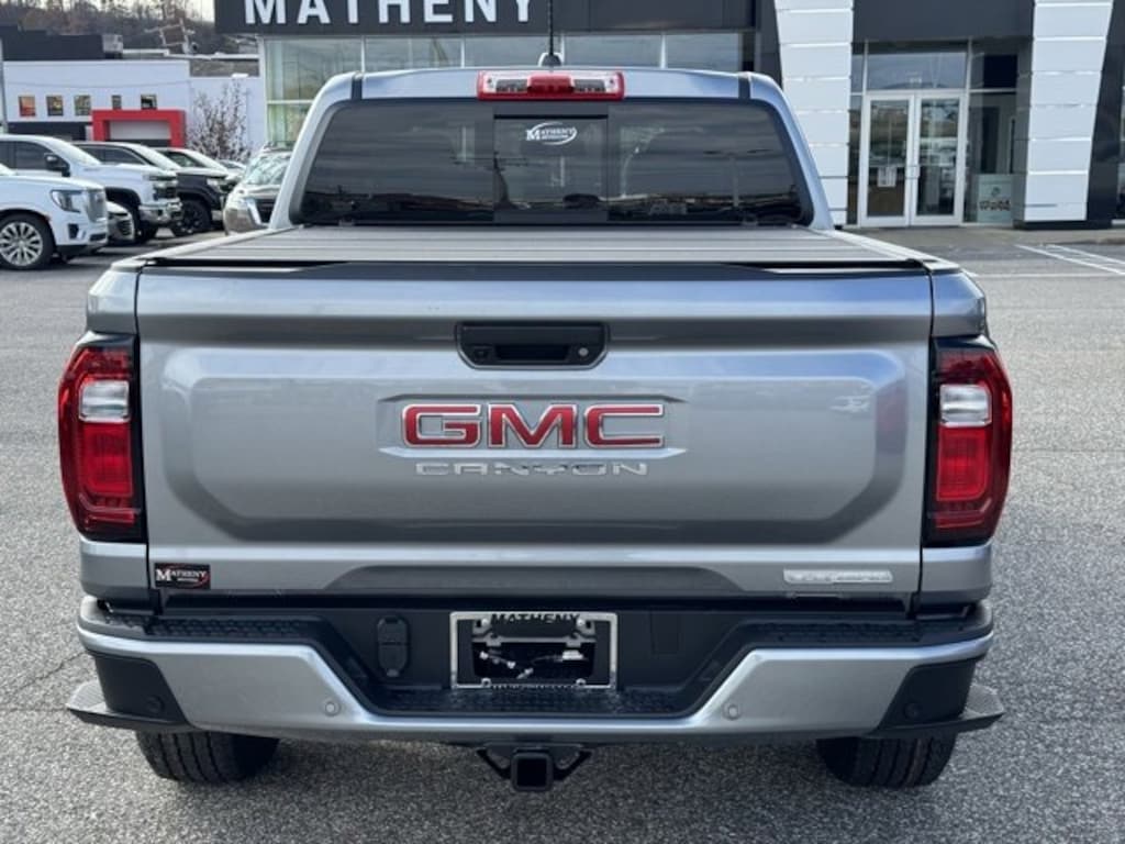 Sterling Metallic 2026 GMC Canyon Elevation 4WD 8-Speed Automatic 2.7L I4 Turbocharged DOHC 16V LEV3-SULEV30 310hp 1 Rear USB Port in Center Console (Charge-Only), 120-Volt Bed Mounted Power Outlet, 1st and 2nd Rows All-Weather Floor Liner, 2 1st Row USB Charge/Data Ports, 2 Rear USB Ports in Center Console (Charge-Only), 3 Years SiriusXM, 3.42 Rear Axle Ratio, 4-Way Manual Front Passenger Seat Adjuster, 4-Wheel Disc Brakes, 6 Speakers, 6-Speaker Audio System Feature, 6-Way Manual Driver Seat Adjuster, 8-Way Power Driver Seat Adjuster, ABS brakes, Adaptive Cruise Control, Air Conditioning, Alloy wheels, AM/FM radio: SiriusXM with 360L, Apple CarPlay/Android Auto, Auto High-beam Headlights, Automatic Emergency Braking, Automatic Stop/Start, Black Assist Steps, Blind Zone Steering Assist with Trailering, Brake assist, Bumpers: body-color, Canyon Pro Safety, Canyon Safety Plus Package, Cloth Seat Trim, Compass, Convenience Package, CoreTec Seat Trim, Delay-off headlights, Driver and Front Passenger Illuminated Visors, Driver door bin, Driver Mode Selector, Driver Seatback Map Pocket, Driver vanity mirror, Dual front impact airbags, Dual front side impact airbags, Dual-Zone Automatic Climate Control Air Conditioning, Electronic Stability Control, Elevation Premium Package, Emergency communication system: OnStar, EZ-Lift and Lower Tailgate, Following Distance Indicator, Forward Collision Alert, Front anti-roll bar, Front Bucket Seats, Front Center Armrest, Front LED Fog Lamps, Front Passenger Seatback Map Pocket, Front Pedestrian and Bicyclist Braking, Front wheel independent suspension, Hard Folding Truck Bed Cover, HD Surround Vision, Heated door mirrors, Heated Driver and Front Passenger Seats, Illuminated entry, Inside Rear-View Auto-Dimming Mirror, IntelliBeam Automatic High Beam on/Off, Interior Overhead Courtesy Light with Dual Reading Lamp, Lane Keep Assist with Lane Departure Warning, Low tire pressure warning, MultiStow Tailgate Storage Compartment, Navigation System, Occupant sensing airbag, Off-Road Suspension, Outside temperature display, Overhead airbag, Overhead console, Panic alarm, Passenger door bin, Passenger vanity mirror, Power door mirrors, Power Driver Lumbar Control Seat Adjuster, Power Inner Sliding Glass Sunroof with Manual Shade, Power steering, Power windows, Preferred Package, Radio data system, Radio: 11.3 Diagonal Premium GMC Infotainment System, Rear Center Fold-Down Armrest with 2 Cupholders, Rear Cross Traffic Braking, Rear of Console 120-Volt Power Outlet, Rear Pedestrian Alert, Rear reading lights, Rear step bumper, Rear window defroster, Remote keyless entry, Remote Vehicle Starter System, Security system, SiriusXM with 360L, Speed control, Speed-sensing steering, Split folding rear seat, Spray-on Bedliner with GMC Logo, Steering wheel mounted audio controls, Stop/Start System Disable Button Engine Control, Tachometer, Tailgate Keyed Cylinder Lock, Technology Package, Til and Telescopic Manual Steering Column, Tilt steering wheel, Traction control, Trip computer, Ultrasonic Rear Park Assist, Variably intermittent wipers, Wheels: 18 x 8.5 Gloss Black Finish Aluminum, Wireless Apple CarPlay/Wireless Android Auto.