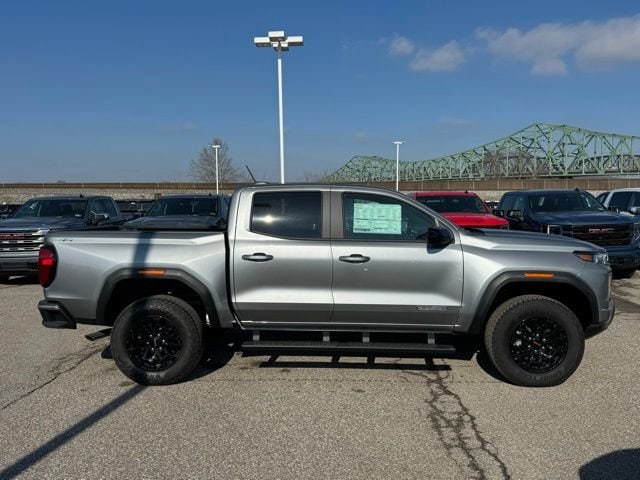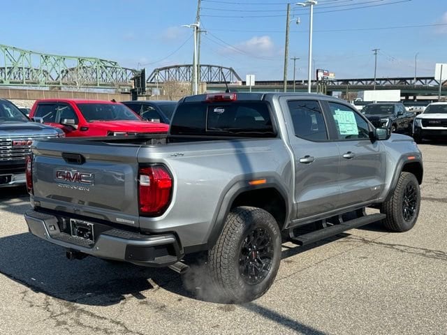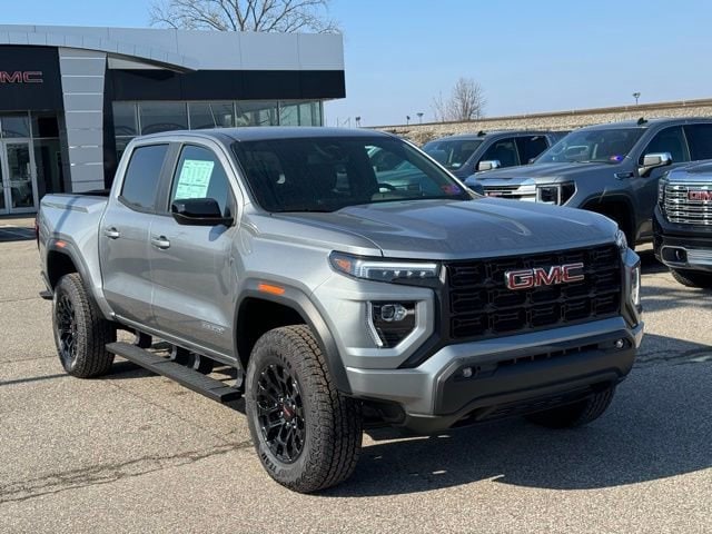 Sterling Metallic 2026 GMC Canyon Elevation 4WD 8-Speed Automatic 2.7L I4 Turbocharged DOHC 16V LEV3-SULEV30 310hp 1 Rear USB Port in Center Console (Charge-Only), 120-Volt Bed Mounted Power Outlet, 1st and 2nd Rows All-Weather Floor Liner, 2 1st Row USB Charge/Data Ports, 2 Rear USB Ports in Center Console (Charge-Only), 3 Years SiriusXM, 3.42 Rear Axle Ratio, 4-Way Manual Front Passenger Seat Adjuster, 4-Wheel Disc Brakes, 6 Speakers, 6-Speaker Audio System Feature, 6-Way Manual Driver Seat Adjuster, 8-Way Power Driver Seat Adjuster, ABS brakes, Air Conditioning, Alloy wheels, AM/FM radio: SiriusXM with 360L, Apple CarPlay/Android Auto, Auto High-beam Headlights, Automatic Emergency Braking, Automatic Stop/Start, Black Assist Steps, Blind Zone Steering Assist with Trailering, Brake assist, Bumpers: body-color, Canyon Pro Safety, Canyon Safety Plus Package, Cloth Seat Trim, Compass, Convenience Package, CoreTec Seat Trim, Delay-off headlights, Driver and Front Passenger Illuminated Visors, Driver door bin, Driver Mode Selector, Driver Seatback Map Pocket, Driver vanity mirror, Dual front impact airbags, Dual front side impact airbags, Dual-Zone Automatic Climate Control Air Conditioning, Electronic Stability Control, Elevation Premium Package, Emergency communication system: OnStar, EZ-Lift and Lower Tailgate, Following Distance Indicator, Forward Collision Alert, Front anti-roll bar, Front Bucket Seats, Front Center Armrest, Front LED Fog Lamps, Front Passenger Seatback Map Pocket, Front Pedestrian and Bicyclist Braking, Front wheel independent suspension, Heated door mirrors, Heated Driver and Front Passenger Seats, Illuminated entry, Inside Rear-View Auto-Dimming Mirror, IntelliBeam Automatic High Beam on/Off, Interior Overhead Courtesy Light with Dual Reading Lamp, Lane Keep Assist with Lane Departure Warning, Low tire pressure warning, MultiStow Tailgate Storage Compartment, Navigation System, Occupant sensing airbag, Off-Road Suspension, Outside temperature display, Overhead airbag, Overhead console, Panic alarm, Passenger door bin, Passenger vanity mirror, Power door mirrors, Power Driver Lumbar Control Seat Adjuster, Power steering, Power windows, Preferred Equipment Group 4VL, Preferred Package, Radio data system, Radio: 11.3 Diagonal Premium GMC Infotainment System, Rear Center Fold-Down Armrest with 2 Cupholders, Rear Cross Traffic Braking, Rear of Console 120-Volt Power Outlet, Rear reading lights, Rear step bumper, Rear window defroster, Remote keyless entry, Remote Vehicle Starter System, Security system, SiriusXM with 360L, Speed control, Speed-sensing steering, Split folding rear seat, Spray-on Bedliner with GMC Logo, Steering wheel mounted audio controls, Stop/Start System Disable Button Engine Control, Tachometer, Tailgate Keyed Cylinder Lock, Til and Telescopic Manual Steering Column, Tilt steering wheel, Traction control, Trip computer, Ultrasonic Rear Park Assist, Variably intermittent wipers, Wheels: 18 x 8.5 Gloss Black Finish Aluminum, Wireless Apple CarPlay/Wireless Android Auto.