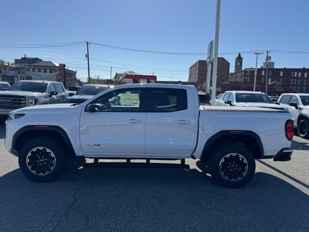 Summit White 2026 GMC Canyon AT4 4WD 8-Speed Automatic 2.7L I4 Turbocharged DOHC 16V LEV3-SULEV30 310hp 120-Volt Bed Mounted Power Outlet, 1st & 2nd Rows All-Weather Floor Liner (LPO), 2 1st Row USB Charge/Data Ports, 2 Rear USB Ports in Center Console (Charge-Only), 3 Years SiriusXM, 3.42 Rear Axle Ratio, 4-Way Manual Front Passenger Seat Adjuster, 4-Wheel Disc Brakes, 6 Speakers, 6-Speaker Audio System Feature, 8-Way Power Driver Seat Adjuster, ABS brakes, Air Conditioning, Alloy wheels, AM/FM radio: SiriusXM with 360L, Apple CarPlay/Android Auto, Auto High-beam Headlights, Auto-dimming Rear-View mirror, Automatic Emergency Braking, Automatic Stop/Start, Automatic temperature control, Black Assist Step (LPO), Blind Zone Steering Assist w/Trailering, Brake assist, Bumpers: body-color, Canyon Pro Safety, Canyon Safety Plus Package, Cloth/CoreTec Seat Trim, Compass, Delay-off headlights, Driver & Front Passenger Illuminated Visors, Driver door bin, Driver Mode Selector, Driver vanity mirror, Dual front impact airbags, Dual front side impact airbags, Dual-Zone Auto Climate Control Air Conditioning, Electronic Stability Control, Emergency communication system: OnStar, EZ-Lift & Lower Tailgate, Following Distance Indicator, Forward Collision Alert, Front anti-roll bar, Front Bucket Seats, Front Center Armrest, Front dual zone A/C, Front fog lights, Front LED Fog Lamps, Front Passenger Seatback Map Pocket, Front Pedestrian & Bicyclist Braking, Front reading lights, Front wheel independent suspension, Hard Folding Truck Bed Cover (LPO), Heated door mirrors, Heated Driver & Front Passenger Seats, Heated front seats, Illuminated entry, Inside Rear-View Auto-Dimming Mirror, IntelliBeam Automatic High Beam On/Off, Interior Overhead Courtesy Light w/Dual Reading Lamp, Lane Keep Assist w/Lane Departure Warning, Low tire pressure warning, MultiStow Tailgate Storage Compartment, Navigation System, Occupant sensing airbag, Off-Road Suspension, Outside temperature display, Overhead airbag, Overhead console, Panic alarm, Passenger door bin, Passenger vanity mirror, Power door mirrors, Power Driver Lumbar Control Seat Adjuster, Power driver seat, Power steering, Power windows, Preferred Equipment Group 4SG, Radio data system, Radio: 11.3 Diagonal Premium GMC Infotainment Sys, Rear Cross Traffic Braking, Rear of Console 120-Volt Power Outlet, Rear reading lights, Rear step bumper, Rear window defroster, Remote keyless entry, Remote Vehicle Starter System, Security system, SiriusXM w/360L, Speed control, Speed-sensing steering, Split folding rear seat, Spray-On Bedliner w/GMC Logo, Steering wheel mounted audio controls, Stop/Start System Disable Button Engine Control, Tachometer, Tailgate Keyed Cylinder Lock, Telescoping steering wheel, Tilt & Telescopic Manual Steering Column, Tilt steering wheel, Traction control, Trip computer, Ultrasonic Rear Park Assist, Variably intermittent wipers, Wheels: 18 x 8.5 Gloss Black, Wireless Apple CarPlay/Wireless Android Auto.
