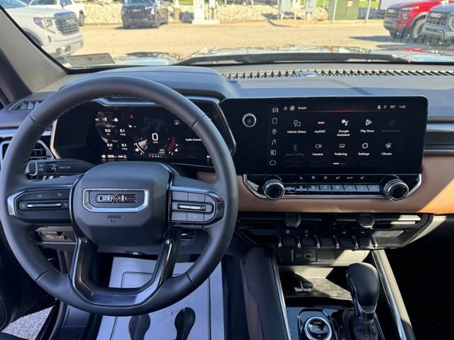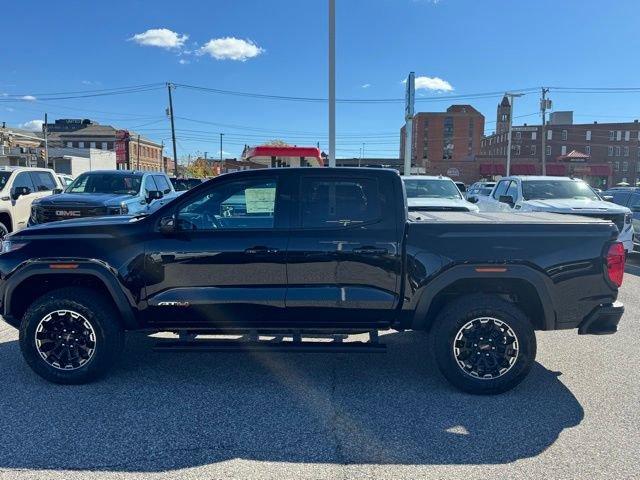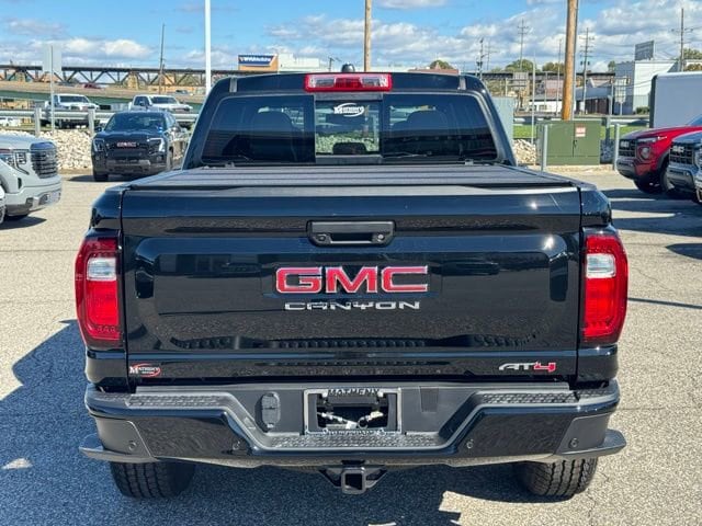 Onyx Black 2026 GMC Canyon AT4 4WD 8-Speed Automatic 2.7L I4 Turbocharged DOHC 16V LEV3-SULEV30 310hp 120-Volt Bed Mounted Power Outlet, 1st and 2nd Rows All-Weather Floor Liner, 2 1st Row USB Charge/Data Ports, 2 Rear USB Ports in Center Console (Charge-Only), 3 Years SiriusXM, 3.42 Rear Axle Ratio, 4-Way Manual Front Passenger Seat Adjuster, 4-Wheel Disc Brakes, 6 Speakers, 6-Speaker Audio System Feature, 8-Way Power Driver Seat Adjuster, ABS brakes, Air Conditioning, Alloy wheels, AM/FM radio: SiriusXM with 360L, Apple CarPlay/Android Auto, Auto High-beam Headlights, Auto-dimming Rear-View mirror, Automatic Emergency Braking, Automatic Stop/Start, Automatic temperature control, Black Assist Steps, Blind Zone Steering Assist with Trailering, Brake assist, Bumpers: body-color, Canyon Pro Safety, Canyon Safety Plus Package, Cloth/CoreTec Seat Trim, Compass, Delay-off headlights, Driver and Front Passenger Illuminated Visors, Driver door bin, Driver Mode Selector, Driver vanity mirror, Dual front impact airbags, Dual front side impact airbags, Dual-Zone Automatic Climate Control Air Conditioning, Electronic Stability Control, Emergency communication system: OnStar, EZ-Lift and Lower Tailgate, Following Distance Indicator, Forward Collision Alert, Front anti-roll bar, Front Bucket Seats, Front Center Armrest, Front dual zone A/C, Front fog lights, Front LED Fog Lamps, Front Passenger Seatback Map Pocket, Front Pedestrian and Bicyclist Braking, Front reading lights, Front wheel independent suspension, Hard Folding Truck Bed Cover, Heated door mirrors, Heated Driver and Front Passenger Seats, Heated front seats, Illuminated entry, Inside Rear-View Auto-Dimming Mirror, IntelliBeam Automatic High Beam on/Off, Interior Overhead Courtesy Light with Dual Reading Lamp, Lane Keep Assist with Lane Departure Warning, Low tire pressure warning, MultiStow Tailgate Storage Compartment, Navigation System, Occupant sensing airbag, Off-Road Suspension, Outside temperature display, Overhead airbag, Overhead console, Panic alarm, Passenger door bin, Passenger vanity mirror, Power door mirrors, Power Driver Lumbar Control Seat Adjuster, Power driver seat, Power steering, Power windows, Preferred Equipment Group 4SG, Radio data system, Radio: 11.3 Diagonal Premium GMC Infotainment System, Rear Cross Traffic Braking, Rear of Console 120-Volt Power Outlet, Rear reading lights, Rear step bumper, Rear window defroster, Remote keyless entry, Remote Vehicle Starter System, Security system, SiriusXM with 360L, Speed control, Speed-sensing steering, Split folding rear seat, Spray-on Bedliner with GMC Logo, Steering wheel mounted audio controls, Stop/Start System Disable Button Engine Control, Tachometer, Tailgate Keyed Cylinder Lock, Telescoping steering wheel, Til and Telescopic Manual Steering Column, Tilt steering wheel, Traction control, Trip computer, Ultrasonic Rear Park Assist, Variably intermittent wipers, Wheels: 18 x 8.5 Gloss Black Aluminum, Wireless Apple CarPlay/Wireless Android Auto.