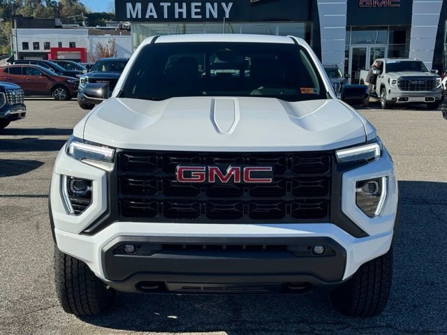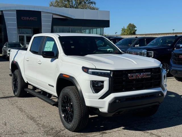 Summit White 2026 GMC Canyon Elevation 4WD 8-Speed Automatic 2.7L I4 Turbocharged DOHC 16V LEV3-SULEV30 310hp 1 Rear USB Port in Center Console (Charge-Only), 120-Volt Bed Mounted Power Outlet, 1st and 2nd Rows All-Weather Floor Liner, 2 1st Row USB Charge/Data Ports, 2 Rear USB Ports in Center Console (Charge-Only), 3 Years SiriusXM, 3.42 Rear Axle Ratio, 4-Way Manual Front Passenger Seat Adjuster, 4-Wheel Disc Brakes, 6 Speakers, 6-Speaker Audio System Feature, 6-Way Manual Driver Seat Adjuster, 8-Way Power Driver Seat Adjuster, ABS brakes, Air Conditioning, Alloy wheels, AM/FM radio: SiriusXM with 360L, Apple CarPlay/Android Auto, Auto High-beam Headlights, Automatic Emergency Braking, Automatic Stop/Start, Black Assist Steps, Blind Zone Steering Assist with Trailering, Brake assist, Bumpers: body-color, Canyon Pro Safety, Canyon Safety Plus Package, Cloth Seat Trim, Compass, Convenience Package, CoreTec Seat Trim, Delay-off headlights, Driver and Front Passenger Illuminated Visors, Driver door bin, Driver Mode Selector, Driver Seatback Map Pocket, Driver vanity mirror, Dual front impact airbags, Dual front side impact airbags, Dual-Zone Automatic Climate Control Air Conditioning, Electronic Stability Control, Elevation Premium Package, Emergency communication system: OnStar, EZ-Lift and Lower Tailgate, Following Distance Indicator, Forward Collision Alert, Front anti-roll bar, Front Bucket Seats, Front Center Armrest, Front LED Fog Lamps, Front Passenger Seatback Map Pocket, Front Pedestrian and Bicyclist Braking, Front wheel independent suspension, Heated door mirrors, Heated Driver and Front Passenger Seats, Illuminated entry, Inside Rear-View Auto-Dimming Mirror, IntelliBeam Automatic High Beam on/Off, Interior Overhead Courtesy Light with Dual Reading Lamp, Lane Keep Assist with Lane Departure Warning, Low tire pressure warning, MultiStow Tailgate Storage Compartment, Navigation System, Occupant sensing airbag, Off-Road Suspension, Outside temperature display, Overhead airbag, Overhead console, Panic alarm, Passenger door bin, Passenger vanity mirror, Power door mirrors, Power Driver Lumbar Control Seat Adjuster, Power steering, Power windows, Preferred Equipment Group 4VL, Preferred Package, Radio data system, Radio: 11.3 Diagonal Premium GMC Infotainment System, Rear Center Fold-Down Armrest with 2 Cupholders, Rear Cross Traffic Braking, Rear of Console 120-Volt Power Outlet, Rear reading lights, Rear step bumper, Rear window defroster, Remote keyless entry, Remote Vehicle Starter System, Security system, SiriusXM with 360L, Speed control, Speed-sensing steering, Split folding rear seat, Spray-on Bedliner with GMC Logo, Steering wheel mounted audio controls, Stop/Start System Disable Button Engine Control, Tachometer, Tailgate Keyed Cylinder Lock, Til and Telescopic Manual Steering Column, Tilt steering wheel, Traction control, Trip computer, Ultrasonic Rear Park Assist, Variably intermittent wipers, Wheels: 18 x 8.5 Gloss Black Finish Aluminum, Wireless Apple CarPlay/Wireless Android Auto.
