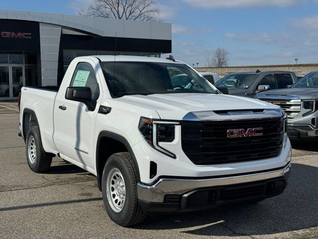 Summit White 2026 GMC Sierra 1500 Pro 4WD 8-Speed Automatic 2.7L I4 Turbocharged DOHC 16V LEV3-SULEV30 310hp 2 Charge/Data USB Ports, 2 Speakers, 2-Speaker Audio System Feature, 220 Amp Alternator, 3.42 Rear Axle Ratio, 4-Way Manual Driver Seat Adjuster, 4-Way Manual Passenger Seat Adjuster, 4-Wheel Disc Brakes, ABS brakes, Air Conditioning, AM/FM radio, Apple CarPlay/Android Auto, Auto High-beam Headlights, Automatic Emergency Braking, Brake assist, Buckle to Drive, Bumpers: chrome, Chrome Header with Flat Black Grille Insert Bars, Compass, Convenience Package, Deep-Tinted Glass, Delay-off headlights, Driver door bin, Dual front impact airbags, Dual front side impact airbags, Electric Rear-Window Defogger, Electronic Stability Control, Emergency communication system: OnStar, EZ Lift Power Lock and Release Tailgate, Following Distance Indicator, Forward Collision Alert, Front 40/20/40 Split-Bench Seat, Front anti-roll bar, Front Center Armrest w/Storage, Front Frame-Mounted Black Recovery Hooks, Front Pedestrian Braking, Front reading lights, Front wheel independent suspension, Fully automatic headlights, HD Rear Vision Camera, Heated door mirrors, Illuminated entry, IntelliBeam Automatic High Beam on/Off, Lane Keep Assist with Lane Departure Warning, LED Cargo Area Lighting, Low tire pressure warning, Occupant sensing airbag, OnStar Services Capable, Outside temperature display, Overhead airbag, Overhead console, Panic alarm, Passenger door bin, Passenger vanity mirror, Power Door Locks, Power door mirrors, Power Front Windows with Driver Express Up/Down, Power Front Windows with Passenger Express Down, Power steering, Power windows, Preferred Equipment Group 1SA, Push Button Start, Radio data system, Radio: GMC Infotainment Audio System, Rear reading lights, Rear step bumper, Remote Keyless Entry, Remote keyless entry, Solar Absorbing Tinted Glass, Speed control, Speed-sensing steering, Spray-on Pickup Bedliner, Standard Suspension Package, Tachometer, Tilt steering wheel, Traction control, Trip computer, Variably intermittent wipers, Vinyl Seat Trim, Voltmeter, Wheels: 17 x 8 Silver Painted Steel, Wi-Fi Hotspot Capable, Wireless Apple CarPlay/Wireless Android Auto.