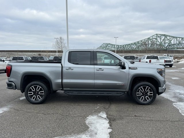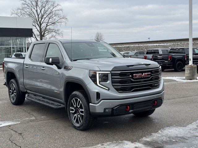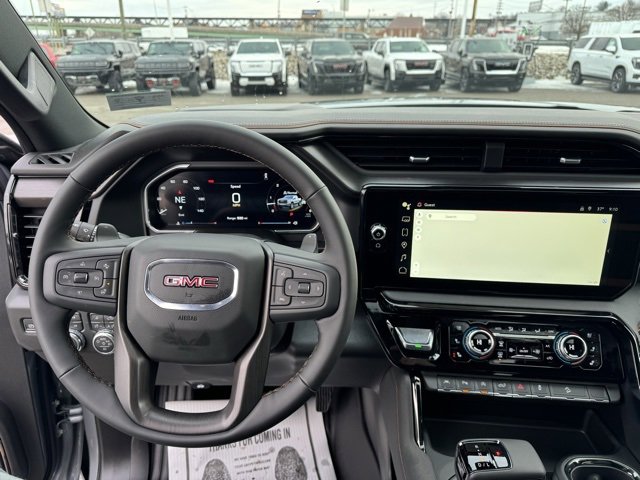 Sterling Metallic 2026 GMC Sierra 1500 AT4 4WD 10-Speed Automatic EcoTec3 6.2L V8 10-Way Power Driver Seat Adjuster w/Lumbar, 10-Way Power Passenger Seat Adjuster w/Lumbar, 120-Volt Bed Mounted Power Outlet, 120-Volt Interior Power Outlet, 170 Amp Alternator, 2 Charge/Data USB Ports Inside Center Console, 2 Type-C Charge-Only Rear USB Ports, 2 USB Ports, 220 Amp Alternator, 3.23 Rear Axle Ratio, 4-Wheel Disc Brakes, 7 Speakers, ABS brakes, Air Conditioning, Alloy wheels, AM/FM radio: SiriusXM with 360L, Apple CarPlay/Android Auto, AT4 Preferred Package, AT4 Premium Package, Auto High-beam Headlights, Auto-dimming door mirrors, Auto-dimming Rear-View mirror, Auto-Locking Rear Differential, Automatic Emergency Braking, Automatic temperature control, Auxiliary External Transmission Oil Cooler, Bed View Camera, Black Chrome Grille Insert Bars, Black Sport Step (LPO), Block heater, Brake assist, Buckle to Drive, Bumpers: body-color, Color-Keyed Carpeting Floor Covering, Compass, Deep-Tinted Glass, Delay-off headlights, Driver door bin, Driver Memory, Driver vanity mirror, Dual Active Exhaust, Dual front impact airbags, Dual front side impact airbags, Electric Rear-Window Defogger, Electronic Stability Control, Emergency communication system: OnStar, External Engine Oil Cooling, Floor-Mounted Center Console, Following Distance Indicator, Forward Collision Alert, Front anti-roll bar, Front Bucket Seats, Front Center Armrest, Front dual zone A/C, Front fog lights, Front Pedestrian Braking, Front Prem Floor Liners w/Removable Carpet Insert, Front Rain-Sensing Wipers, Front reading lights, Front wheel independent suspension, Fully automatic headlights, HD Surround Vision, Heated 2nd Row Outboard Seats, Heated door mirrors, Heated Driver & Front Outboard Passenger Seating, Heated front seats, Heated rear seats, Heated steering wheel, Heavy-Duty Air Filter, Hill Descent Control, Hitch Guidance, Hitch View, Illuminated entry, In-Vehicle Trailering System App, Integrated Trailer Brake Controller, IntelliBeam Automatic High Beam On/Off, Keyless Open & Start, Lane Keep Assist w/Lane Departure Warning, LED Cargo Area Lighting, Low tire pressure warning, Memory seat, Multicolor 15 Diagonal Head-Up Display, Navigation System, Occupant sensing airbag, Off-Road High Clearance Step (LPO), Off-Road Suspension, OnStar Services Capable, Outside temperature display, Overhead airbag, Overhead console, Panic alarm, Passenger door bin, Passenger vanity mirror, Perforated Front Leather Seat Trim, Perimeter Lighting, Power Door Locks, Power door mirrors, Power driver seat, Power Front Passenger Windows w/Express Up/Down, Power Front Windows w/Driver Express Up/Down, Power passenger seat, Power Rake & Telescoping Steering Column, Power Rear Windows w/Express Down, Power Sliding Rear Window w/Rear Defogger, Power steering, Power Sunroof, Power windows, Preferred Equipment Group 4SB, Premium Bose 7-Speaker Sound System, Push Button Start, Radio data system, Radio: Premium GMC Infotainment Audio System, Rain sensing wipers, Rear Camera Mirror, Rear Cross Traffic Braking, Rear Pedestrian Detection, Rear Prem Floor Liners w/Removable Carpet Insert, Rear reading lights, Rear seat center armrest, Rear step bumper, Rear Wheelhouse Liners, Rear window defroster, Red Recovery Hooks, Remote keyless entry, Remote Vehicle Starter System, Safety Alert Seat, Security system, SiriusXM w/360L Trial Subscription, Speed control, Speed-sensing steering, Split folding rear seat, Spray-On Pickup Bedliner w/GMC Logo, Steering Wheel Audio Controls, Steering wheel mounted audio controls, Tachometer, Technology Package, Telescoping steering wheel, Theft Deterrent System (Unauthorized Entry), Tilt steering wheel, Traction control, Trailer Camera Provisions, Trailer Side Blind Zone Alert, Trailering Package, Trip computer, Ultrasonic Front & Rear Park Assist, Universal Home Remote, Variably intermittent wipers, Ventilated Driver & Front Passenger Seats, Ventilated front seats, Vol