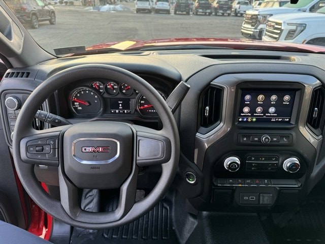Cardinal Red 2026 GMC Sierra 1500 Pro 4WD 8-Speed Automatic 2.7L I4 Turbocharged DOHC 16V LEV3-SULEV30 310hp 2 Charge/Data USB Ports, 2 Speakers, 2-Speaker Audio System Feature, 220 Amp Alternator, 3.42 Rear Axle Ratio, 4-Way Manual Driver Seat Adjuster, 4-Way Manual Passenger Seat Adjuster, 4-Wheel Disc Brakes, ABS brakes, Air Conditioning, AM/FM radio, Apple CarPlay/Android Auto, Auto High-beam Headlights, Automatic Emergency Braking, Brake assist, Buckle to Drive, Bumpers: chrome, Chrome Header with Flat Black Grille Insert Bars, Compass, Convenience Package, Deep-Tinted Glass, Delay-off headlights, Driver door bin, Dual front impact airbags, Dual front side impact airbags, Electric Rear-Window Defogger, Electronic Stability Control, Emergency communication system: OnStar, EZ Lift Power Lock and Release Tailgate, Following Distance Indicator, Forward Collision Alert, Front 40/20/40 Split-Bench Seat, Front anti-roll bar, Front Center Armrest w/Storage, Front Frame-Mounted Black Recovery Hooks, Front Pedestrian Braking, Front reading lights, Front wheel independent suspension, Fully automatic headlights, HD Rear Vision Camera, Heated door mirrors, Illuminated entry, IntelliBeam Automatic High Beam on/Off, Lane Keep Assist with Lane Departure Warning, LED Cargo Area Lighting, Low tire pressure warning, Occupant sensing airbag, OnStar Services Capable, Outside temperature display, Overhead airbag, Overhead console, Panic alarm, Passenger door bin, Passenger vanity mirror, Power Door Locks, Power door mirrors, Power Front Windows with Driver Express Up/Down, Power Front Windows with Passenger Express Down, Power steering, Power windows, Preferred Equipment Group 1SA, Push Button Start, Radio data system, Radio: GMC Infotainment Audio System, Rear reading lights, Rear step bumper, Remote Keyless Entry, Remote keyless entry, Solar Absorbing Tinted Glass, Speed control, Speed-sensing steering, Spray-on Pickup Bedliner, Standard Suspension Package, Tachometer, Tilt steering wheel, Traction control, Trip computer, Variably intermittent wipers, Vinyl Seat Trim, Voltmeter, Wheels: 17 x 8 Silver Painted Steel, Wi-Fi Hotspot Capable, Wireless Apple CarPlay/Wireless Android Auto.