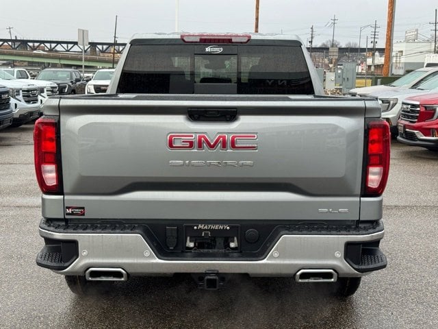Sterling Metallic 2026 GMC Sierra 1500 SLE 4WD 10-Speed Automatic EcoTec3 5.3L V8 10-Way Power Driver Seat Adjuster with Lumbar, 120-Volt Bed Mounted Power Outlet, 120-Volt Interior Power Outlet, 170 Amp Alternator, 2 Charge/Data USB Ports, 2 Type-C Charge-Only Rear USB Ports, 220 Amp Alternator, 3.23 Rear Axle Ratio, 4-Way Manual Passenger Seat Adjuster, 4-Wheel Disc Brakes, 6 Speakers, 6-Speaker Audio System Feature, ABS brakes, Adaptive Cruise Control, Air Conditioning, All-Weather Floor Liner, Alloy wheels, AM/FM radio: SiriusXM with 360L, Apple CarPlay/Android Auto, Auto High-beam Headlights, Auto-Locking Rear Differential, Automatic Emergency Braking, Automatic temperature control, Auxiliary External Transmission Oil Cooler, Brake assist, Buckle to Drive, Bumpers: chrome, Chrome Header with Medium Silver Grille Insert Bars, Chrome Wheel to Wheel Assist Steps, Cloth Seat Trim, Color-Keyed Carpeting Floor Covering, Compass, Deep-Tinted Glass, Delay-off headlights, Driver door bin, Driver vanity mirror, Dual Exhaust System, Dual front impact airbags, Dual front side impact airbags, Dual-Zone Automatic Climate Control, Electric Rear-Window Defogger, Electronic Stability Control, Emergency communication system: OnStar, External Engine Oil Cooling, Following Distance Indicator, Forward Collision Alert, Front 40/20/40 Split-Bench Seat, Front anti-roll bar, Front Center Armrest w/Storage, Front dual zone A/C, Front Frame-Mounted Black Recovery Hooks, Front Pedestrian Braking, Front reading lights, Front Rubberized-Vinyl Floor Mats, Front wheel independent suspension, Fully automatic headlights, HD Rear Vision Camera, HD Surround Vision, Heated door mirrors, Heated Driver and Front Outboard Passenger Seating, Heated front seats, Heated steering wheel, Heavy-Duty Air Filter, Hill Descent Control, Hitch Guidance, Hitch View, Illuminated entry, in-Vehicle Trailering System App, Integrated Trailer Brake Controller, IntelliBeam Automatic High Beam on/Off, Keyless Open and Start, Lane Keep Assist with Lane Departure Warning, LED Cargo Area Lighting, Low tire pressure warning, Manual Tilt-Wheel and Telescoping Steering Column, Navigation System, Occupant sensing airbag, Off-Road Suspension, OnStar Services Capable, Outside temperature display, Overhead airbag, Overhead console, Panic alarm, Passenger door bin, Passenger vanity mirror, Perimeter Lighting, Power Door Locks, Power door mirrors, Power driver seat, Power Front Windows with Driver Express Up/Down, Power Front Windows with Passenger Express Down, Power Rear Windows with Express Down, Power Sliding Rear Window with Rear Defogger, Power steering, Power windows, Preferred Equipment Group 3SA, Preferred Package, Push Button Start, Radio data system, Radio: Premium GMC Infotainment Audio System, Rear Cross Traffic Braking, Rear Pedestrian Detection, Rear reading lights, Rear Rubberized-Vinyl Floor Mats, Rear step bumper, Rear Wheelhouse Liners, Rear window defroster, Remote keyless entry, Remote Start Package, Remote Vehicle Starter System, Security system, Sierra Safety Plus Package, SiriusXM with 360L Trial Subscription, SLE Convenience Package, SLE Value Package, Speed control, Speed-sensing steering, Split folding rear seat, Standard Suspension Package, Steering Wheel Audio Controls, Steering wheel mounted audio controls, Tachometer, Telescoping steering wheel, Theft Deterrent System (unauthorized Entry), Tilt steering wheel, Traction control, Trailer Camera Provisions, Trailer Side Blind Zone Alert, Trailering Package, Trip computer, Ultrasonic Front and Rear Park Assist, Universal Home Remote, Variably intermittent wipers, Voltmeter, Wheels: 17 x 8 Bright Silver Painted Aluminum, Wheels: 18 x 8.5 6-Spoke Machined Aluminum, Wi-Fi Hotspot Capable, Wireless Apple CarPlay/Wireless Android Auto, X31 Hard Badge, X31 Off-Road Package.