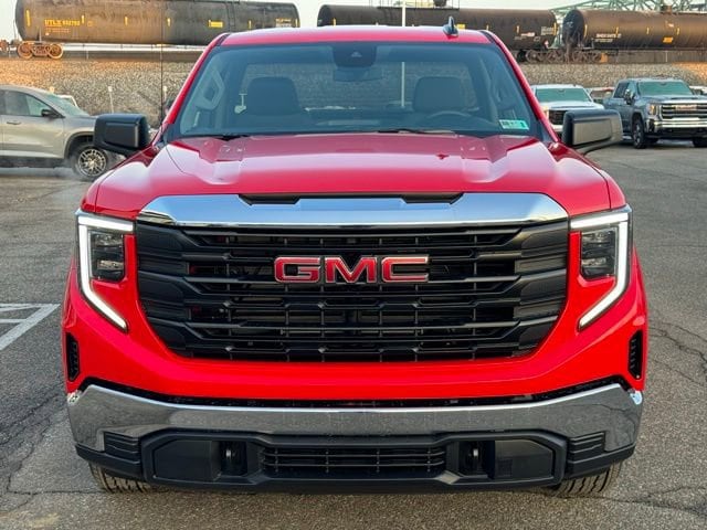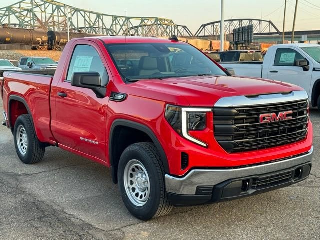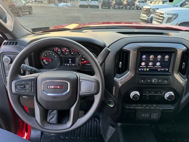 Cardinal Red 2026 GMC Sierra 1500 Pro 4WD 8-Speed Automatic 2.7L I4 Turbocharged DOHC 16V LEV3-SULEV30 310hp 2 Charge/Data USB Ports, 2 Speakers, 2-Speaker Audio System Feature, 220 Amp Alternator, 3.42 Rear Axle Ratio, 4-Way Manual Driver Seat Adjuster, 4-Way Manual Passenger Seat Adjuster, 4-Wheel Disc Brakes, ABS brakes, Air Conditioning, AM/FM radio, Apple CarPlay/Android Auto, Auto High-beam Headlights, Automatic Emergency Braking, Brake assist, Buckle to Drive, Bumpers: chrome, Chrome Header with Flat Black Grille Insert Bars, Compass, Convenience Package, Deep-Tinted Glass, Delay-off headlights, Driver door bin, Dual front impact airbags, Dual front side impact airbags, Electric Rear-Window Defogger, Electronic Stability Control, Emergency communication system: OnStar, EZ Lift Power Lock and Release Tailgate, Following Distance Indicator, Forward Collision Alert, Front 40/20/40 Split-Bench Seat, Front anti-roll bar, Front Center Armrest w/Storage, Front Frame-Mounted Black Recovery Hooks, Front Pedestrian Braking, Front reading lights, Front wheel independent suspension, Fully automatic headlights, HD Rear Vision Camera, Heated door mirrors, Illuminated entry, IntelliBeam Automatic High Beam on/Off, Lane Keep Assist with Lane Departure Warning, LED Cargo Area Lighting, Low tire pressure warning, Occupant sensing airbag, OnStar Services Capable, Outside temperature display, Overhead airbag, Overhead console, Panic alarm, Passenger door bin, Passenger vanity mirror, Power Door Locks, Power door mirrors, Power Front Windows with Driver Express Up/Down, Power Front Windows with Passenger Express Down, Power steering, Power windows, Preferred Equipment Group 1SA, Push Button Start, Radio data system, Radio: GMC Infotainment Audio System, Rear reading lights, Rear step bumper, Remote Keyless Entry, Remote keyless entry, Solar Absorbing Tinted Glass, Speed control, Speed-sensing steering, Spray-on Pickup Bedliner, Standard Suspension Package, Tachometer, Tilt steering wheel, Traction control, Trip computer, Variably intermittent wipers, Vinyl Seat Trim, Voltmeter, Wheels: 17 x 8 Silver Painted Steel, Wi-Fi Hotspot Capable, Wireless Apple CarPlay/Wireless Android Auto.