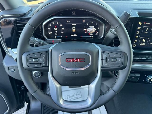 Onyx Black 2026 GMC Sierra 1500 Elevation 4WD 8-Speed Automatic 2.7L I4 Turbocharged DOHC 16V LEV3-SULEV30 310hp 10-Way Power Driver Seat Adjuster with Lumbar, 120-Volt Bed Mounted Power Outlet, 120-Volt Interior Power Outlet, 2 Charge/Data USB Ports, 2 Type-C Charge-Only Rear USB Ports, 220 Amp Alternator, 3.42 Rear Axle Ratio, 4-Way Manual Passenger Seat Adjuster, 4-Wheel Disc Brakes, 6 Speakers, 6-Speaker Audio System Feature, 6 Rectangular Black Tubular Assist Steps, ABS brakes, Air Conditioning, Alloy wheels, AM/FM radio: SiriusXM with 360L, Apple CarPlay/Android Auto, Auto High-beam Headlights, Auto-Locking Rear Differential, Automatic Emergency Braking, Automatic temperature control, Body Color Header with Gloss Black Mesh Grille Bars, Brake assist, Buckle to Drive, Bumpers: body-color, Cloth Seat Trim, Color-Keyed Carpeting Floor Covering, Compass, Deep-Tinted Glass, Delay-off headlights, Driver door bin, Driver vanity mirror, Drop-in Bed Liner with Tailgate Liner, Dual front impact airbags, Dual front side impact airbags, Electric Rear-Window Defogger, Electronic Stability Control, Emergency communication system: OnStar, Following Distance Indicator, Forward Collision Alert, Front 40/20/40 Split-Bench Seat, Front anti-roll bar, Front Center Armrest w/Storage, Front dual zone A/C, Front fog lights, Front Frame-Mounted Black Recovery Hooks, Front Pedestrian Braking, Front reading lights, Front Rubberized-Vinyl Floor Mats, Front wheel independent suspension, Fully automatic headlights, HD Rear Vision Camera, Heated door mirrors, Heated Driver and Front Outboard Passenger Seating, Heated front seats, Heated steering wheel, High Capacity Suspension Package, Hitch Guidance, Illuminated entry, Integrated Trailer Brake Controller, IntelliBeam Automatic High Beam on/Off, Keyless Open and Start, Lane Keep Assist with Lane Departure Warning, LED Cargo Area Lighting, Low tire pressure warning, Manual Tilt-Wheel and Telescoping Steering Column, Navigation System, Occupant sensing airbag, OnStar Services Capable, Outside temperature display, Overhead airbag, Overhead console, Panic alarm, Passenger door bin, Passenger vanity mirror, Power Door Locks, Power door mirrors, Power driver seat, Power Front Windows with Driver Express Up/Down, Power Front Windows with Passenger Express Down, Power Rear Windows with Express Down, Power steering, Power windows, Push Button Start, Radio data system, Radio: Premium GMC Infotainment Audio System, Rear reading lights, Rear Rubberized-Vinyl Floor Mats, Rear seat center armrest, Rear step bumper, Rear window defroster, Remote keyless entry, Remote Vehicle Starter System, Security system, SiriusXM with 360L Trial Subscription, Soft Rolling Truck Bed Cover (LPO), Speed control, Speed-sensing steering, Split folding rear seat, Steering Wheel Audio Controls, Steering wheel mounted audio controls, Tachometer, Telescoping steering wheel, Theft Deterrent System (unauthorized Entry), Tilt steering wheel, Traction control, Trailering Package, Trip computer, Variably intermittent wipers, Voltmeter, Wheels: : 20 x 9 High Gloss Black Painted Aluminum, Wi-Fi Hotspot Capable, Wireless Apple CarPlay/Wireless Android Auto.