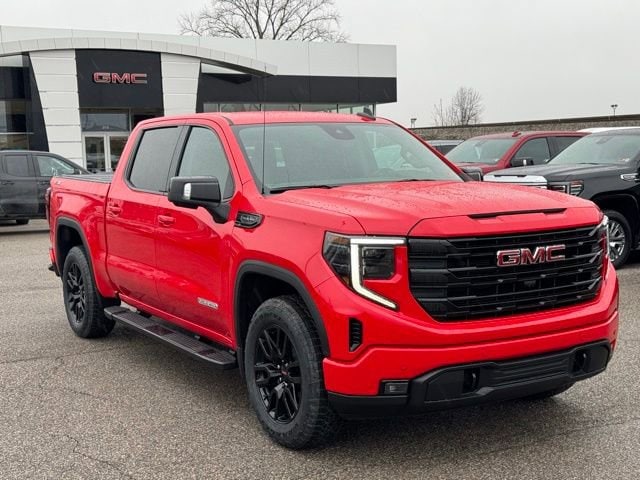 Cardinal Red 2026 GMC Sierra 1500 Elevation 4WD 10-Speed Automatic EcoTec3 5.3L V8 10-Way Power Driver Seat Adjuster with Lumbar, 120-Volt Bed Mounted Power Outlet, 120-Volt Interior Power Outlet, 170 Amp Alternator, 2 Charge/Data USB Ports, 2 Charge/Data USB Ports Inside Center Console, 2 Type-C Charge-Only Rear USB Ports, 220 Amp Alternator, 3 Years SiriusXM, 3.23 Rear Axle Ratio, 4-Way Manual Passenger Seat Adjuster, 4-Wheel Disc Brakes, 6 Speakers, 6-Speaker Audio System Feature, 6 Rectangular Black Tubular Assist Steps, ABS brakes, Adaptive Cruise Control, Air Conditioning, Alloy wheels, AM/FM radio: SiriusXM with 360L, Apple CarPlay/Android Auto, Auto High-beam Headlights, Auto-Locking Rear Differential, Automatic Emergency Braking, Automatic temperature control, Auxiliary External Transmission Oil Cooler, Body Color Header with Gloss Black Mesh Grille Bars, Brake assist, Buckle to Drive, Bumpers: body-color, Cloth Rear Seat with Storage Package, Cloth Seat Trim, Color-Keyed Carpeting Floor Covering, Compass, Deep-Tinted Glass, Delay-off headlights, Driver door bin, Driver vanity mirror, Dual Exhaust System, Dual front impact airbags, Dual front side impact airbags, Electric Rear-Window Defogger, Electronic Precision Shift, Electronic Stability Control, Emergency communication system: OnStar, External Engine Oil Cooling, Floor-Mounted Center Console, Following Distance Indicator, Forward Collision Alert, Front 40/20/40 Split-Bench Seat, Front anti-roll bar, Front Bucket Seats, Front Center Armrest w/Storage, Front dual zone A/C, Front fog lights, Front Frame-Mounted Black Recovery Hooks, Front Pedestrian Braking, Front reading lights, Front Rubberized-Vinyl Floor Mats, Front wheel independent suspension, Fully automatic headlights, Hard Folding Truck Bed Cover, HD Rear Vision Camera, HD Surround Vision, Heated door mirrors, Heated Driver and Front Outboard Passenger Seating, Heated front seats, Heated steering wheel, Heavy-Duty Air Filter, High Capacity Suspension Package, High Gloss Black Mirror Caps, Hill Descent Control, Hitch Guidance, Hitch View, Illuminated entry, in-Vehicle Trailering System App, Integrated Trailer Brake Controller, IntelliBeam Automatic High Beam on/Off, Keyless Open and Start, Lane Keep Assist with Lane Departure Warning, LED Cargo Area Lighting, Low tire pressure warning, Manual Tilt-Wheel and Telescoping Steering Column, Navigation System, Occupant sensing airbag, Off-Road Suspension, OnStar Services Capable, Outside temperature display, Overhead airbag, Overhead console, Panic alarm, Passenger door bin, Passenger vanity mirror, Perimeter Lighting, Power Door Locks, Power door mirrors, Power driver seat, Power Front Windows with Driver Express Up/Down, Power Front Windows with Passenger Express Down, Power Rear Windows with Express Down, Power Sliding Rear Window with Rear Defogger, Power steering, Power windows, Preferred Equipment Group 3SB, Preferred Package, Premium Bose 7-Speaker Sound System, Push Button Start, Radio data system, Radio: Premium GMC Infotainment Audio System, Rear Cross Traffic Braking, Rear Pedestrian Detection, Rear reading lights, Rear Rubberized-Vinyl Floor Mats, Rear seat center armrest, Rear step bumper, Rear Wheelhouse Liners, Rear window defroster, Remote keyless entry, Remote Vehicle Starter System, Security system, Sierra Safety Plus Package, SiriusXM with 360L Trial Subscription, Speed control, Speed-sensing steering, Split folding rear seat, Spray-on Pickup Bedliner with GMC Logo, Steering Wheel Audio Controls, Steering wheel mounted audio controls, Tachometer, Telescoping steering wheel, Theft Deterrent System (unauthorized Entry), Tilt steering wheel, Traction control, Trailer Camera Provisions, Trailer Side Blind Zone Alert, Trailering Package, Trip computer, Ultrasonic Front and Rear Park Assist, Universal Home Remote, Variably intermittent wipers, Voltmeter, Wheels: : 20 x 9 High Gloss Black Painted Alumin