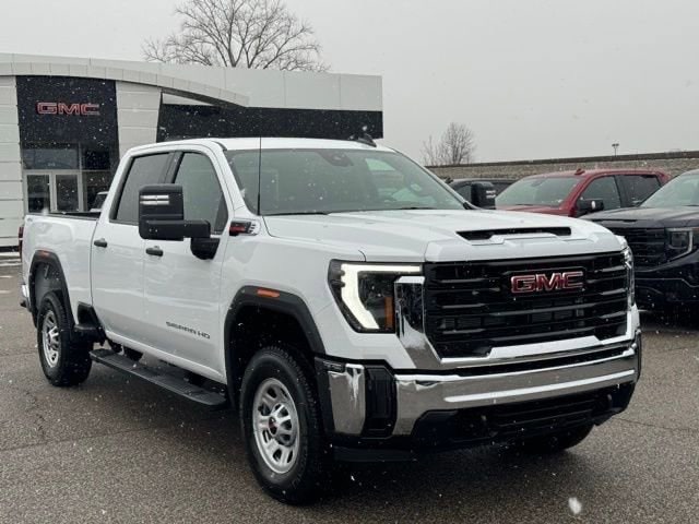 Summit White 2026 GMC Sierra 2500HD Pro 4WD 10-Speed Automatic Duramax 6.6L V8 Turbodiesel 120-Volt Bed Mounted Power Outlet, 120-Volt Instrument Panel Power Outlet, 2 Charge-Only Rear USB Ports, 2 Charge/Data USB Ports, 2-Speed Electronic Shift Transfer Case, 220-Amp Alternator, 4-Way Manual Driver Seat Adjuster, 4-Way Manual Passenger Seat Adjuster, 4-Wheel Disc Brakes, 6 Speakers, 6-Speaker Audio System Feature, 6 Rectangular Black Tubular Assist Steps, ABS brakes, Air Conditioning, AM/FM radio, Apple CarPlay/Android Auto, Auto High-beam Headlights, Automatic Emergency Braking, Brake assist, Buckle to Drive, Bumpers: chrome, Chrome Grille with Flat Black Grille Insert Bars, Compass, Convenience Package, Deep-Tinted Glass, Delay-off headlights, Driver door bin, Dual front impact airbags, Dual front side impact airbags, Electric Rear-Window Defogger, Electronic Stability Control, Emergency communication system: OnStar, Engine Block Heater, Exhaust Brake, EZ Lift Power Lock and Release Tailgate, Following Distance Indicator, Forward Collision Alert, Front 40/20/40 Split-Bench Seats, Front anti-roll bar, Front Center Armrest w/Storage, Front Pedestrian Braking, Front reading lights, Front wheel independent suspension, Fully automatic headlights, Gooseneck/5th Wheel Prep Package, Heavy-Duty 80 Amp Battery, Illuminated entry, IntelliBeam Automatic High Beam on/Off, Lane Departure Warning System, LED Cargo Area Lighting, Low tire pressure warning, Occupant sensing airbag, OnStar Services Capable, Outside Power-Adjustable Black Mirrors, Outside temperature display, Overhead airbag, Overhead console, Panic alarm, Passenger door bin, Passenger vanity mirror, Pickup Box, Power steering, Power windows, Preferred Equipment Group 1SA, Premium audio system: GMC Infotainment System, Push Button Start, Radio: AM/FM with GMC Infotainment System, Rear reading lights, Rear step bumper, Remote Keyless Entry, Remote keyless entry, Snow Plow Prep/Camper Package, Solar Absorbing Tinted Glass, Speed control, Split folding rear seat, Spray-on Pickup Bedliner, Suspension Package, Tachometer, Tilt steering wheel, Traction control, Trip computer, Variably intermittent wipers, Vinyl Seat Trim, Voltmeter, Wheels: 17 Silver Painted Steel, Wheels: 18 Silver 8-Spoke Painted Steel, Winter Grille Cover, Wireless Phone Projection.
