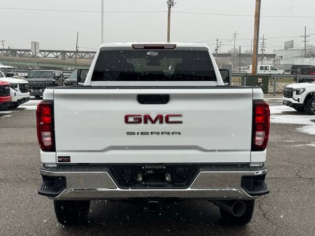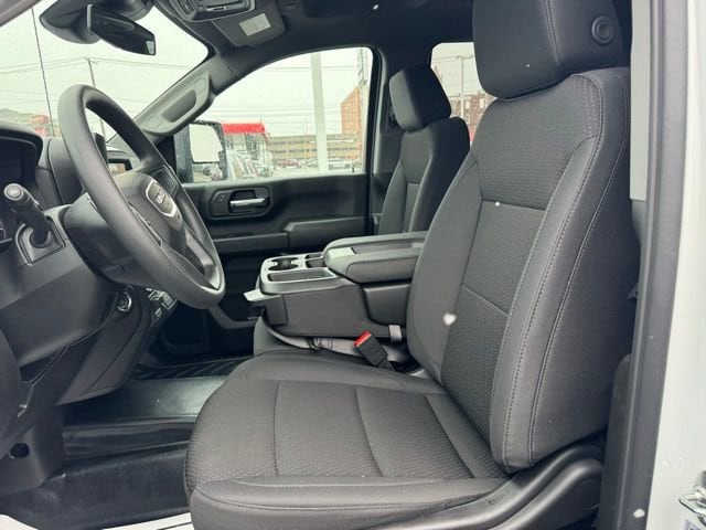 Summit White 2026 GMC Sierra 2500HD Pro 4WD 10-Speed Automatic Duramax 6.6L V8 Turbodiesel 120-Volt Bed Mounted Power Outlet, 120-Volt Instrument Panel Power Outlet, 2 Charge-Only Rear USB Ports, 2 Charge/Data USB Ports, 2-Speed Electronic Shift Transfer Case, 220-Amp Alternator, 4-Way Manual Driver Seat Adjuster, 4-Way Manual Passenger Seat Adjuster, 4-Wheel Disc Brakes, 6 Speakers, 6-Speaker Audio System Feature, 6 Rectangular Black Tubular Assist Steps, ABS brakes, Air Conditioning, AM/FM radio, Apple CarPlay/Android Auto, Auto High-beam Headlights, Automatic Emergency Braking, Brake assist, Buckle to Drive, Bumpers: chrome, Chrome Grille with Flat Black Grille Insert Bars, Compass, Convenience Package, Deep-Tinted Glass, Delay-off headlights, Driver door bin, Dual front impact airbags, Dual front side impact airbags, Electric Rear-Window Defogger, Electronic Stability Control, Emergency communication system: OnStar, Engine Block Heater, Exhaust Brake, EZ Lift Power Lock and Release Tailgate, Following Distance Indicator, Forward Collision Alert, Front 40/20/40 Split-Bench Seats, Front anti-roll bar, Front Center Armrest w/Storage, Front Pedestrian Braking, Front reading lights, Front wheel independent suspension, Fully automatic headlights, Heavy-Duty 80 Amp Battery, Illuminated entry, IntelliBeam Automatic High Beam on/Off, Lane Departure Warning System, LED Cargo Area Lighting, Low tire pressure warning, Occupant sensing airbag, OnStar Services Capable, Outside Power-Adjustable Black Mirrors, Outside temperature display, Overhead airbag, Overhead console, Panic alarm, Passenger door bin, Passenger vanity mirror, Pickup Box, Power steering, Power windows, Preferred Equipment Group 1SA, Premium audio system: GMC Infotainment System, Push Button Start, Radio: AM/FM with GMC Infotainment System, Rear reading lights, Rear step bumper, Remote Keyless Entry, Remote keyless entry, Snow Plow Prep/Camper Package, Solar Absorbing Tinted Glass, Speed control, Split folding rear seat, Spray-on Pickup Bedliner, Suspension Package, Tachometer, Tilt steering wheel, Traction control, Trip computer, Variably intermittent wipers, Vinyl Seat Trim, Voltmeter, Wheels: 17 Silver Painted Steel, Wheels: 18 Silver 8-Spoke Painted Steel, Winter Grille Cover, Wireless Phone Projection.