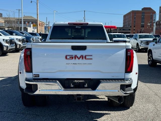 Glacier White Tricoat 2026 GMC Sierra 3500HD SLT 4WD 10-Speed Automatic Duramax 6.6L V8 Turbodiesel 10-Way Power Driver Seat Adjuster with Lumbar, 10-Way Power Passenger Seat Adjuster with Lumbar, 120-Volt Bed Mounted Power Outlet, 120-Volt Instrument Panel Power Outlet, 2 Charge-Only Rear USB Ports, 2 Charge/Data USB Ports, 2 Charge/Data USB Ports Inside Center Console, 2-Speed Active Transfer Case, 220 Amp Alternator, 4-Wheel Disc Brakes, 6 Speakers, 6-Speaker Audio System Feature, 6 Rectangular Chromed Tubular Assist Steps, ABS brakes, Adaptive Cruise Control, Air Conditioning, AM/FM radio: SiriusXM with 360L, Auto High-beam Headlights, Auto-dimming door mirrors, Auto-dimming Rear-View mirror, Automatic Emergency Braking, Automatic temperature control, Bed View Camera with Two Trailer Camera Provisions, Bose Premium 7-Speaker Sound System, Brake assist, Buckle to Drive, Bumpers: chrome, Chrome Surround Grille with Chrome Insert Bars, Compass, Deep-Tinted Glass, Delay-off headlights, Driver door bin, Driver Memory, Driver vanity mirror, Dual front impact airbags, Dual front side impact airbags, Electric Rear-Window Defogger, Electronic Stability Control, Emergency communication system: OnStar Services capable, Engine Block Heater, Exhaust Brake, Exterior Parking Camera Rear, Floor-Mounted Center Console, Following Distance Indicator, Forward Collision Alert, Front 40/20/40 Split-Bench Seats with Lockable Storage, Front anti-roll bar, Front Bucket Seats, Front Center Armrest w/Storage, Front dual zone A/C, Front fog lights, Front Pedestrian Braking, Front Rain-Sensing Wipers, Front reading lights, Front wheel independent suspension, Fully automatic headlights, GMC Premium 13.4 Diagonal Information Display, Gooseneck/5th Wheel Prep Package, HD Surround Vision, Heated 2nd Row Outboard Seats, Heated door mirrors, Heated Driver and Front Outboard Passenger Seats, Heated front seats, Heated steering wheel, Heavy-Duty 80 Amp-Hour Battery, High Idle Switch, Hitch Guidance with Hitch View, Illuminated entry, IntelliBeam Automatic High Beam on/Off, Keyless Open and Start, Lane Departure Warning System, LED Cargo Area Lighting, Low tire pressure warning, Manual Tilt-Wheel/Telescoping Steering Column, Memory seat, Occupant sensing airbag, Outside temperature display, Overhead airbag, Overhead console, Panic alarm, Passenger door bin, Passenger vanity mirror, Perforated Leather-Appointed Front Outboard Seat Trim, Pickup Bed, Power door mirrors, Power driver seat, Power Front Windows with Passenger Express Up/Down, Power passenger seat, Power Sliding Rear Window with Defogger, Power steering, Power Sunroof, Power windows, Preferred Equipment Group 4SA, Premium audio system: Premium GMC Infotainment System, Premium Front Floor Liners with Removable Carpet Insert, Premium Rear Floor Liners with Removable Carpet Insert, Push Button Start, Radio: AM/FM Stereo with Premium GMC Infotainment System, Rain sensing wipers, Rear Cross Traffic Alert, Rear reading lights, Rear seat center armrest, Rear step bumper, Rear Wheelhouse Liners, Rear window defroster, Remote keyless entry, Remote Vehicle Starter System, Safety Alert Seat, Security system, Sierra HD Pro Safety Plus Package, SiriusXM with 360L Trial Subscription, SLT Convenience Package, SLT Preferred Package, Speed control, Speed-sensing steering, Split folding rear seat, Spray-on Pickup Bedliner with GMC Logo, Steering Wheel Audio Controls, Steering wheel mounted audio controls, Suspension Package, Tachometer, Telescoping steering wheel, Tilt steering wheel, Traction control, Trailer Camera Provisions, Trailer Side Blind Zone Alert, Trip computer, Turn signal indicator mirrors, Ultrasonic Front and Rear Park Assist, Unauthorized Entry Theft-Deterrent System, Universal Home Remote, Upfitter Switch Kit (5), Variably intermittent wipers, Ventilated Driver and Front Passenger Seats, Voltmeter, Winter Grille Cover, Wireless Charging, Wireless Phon