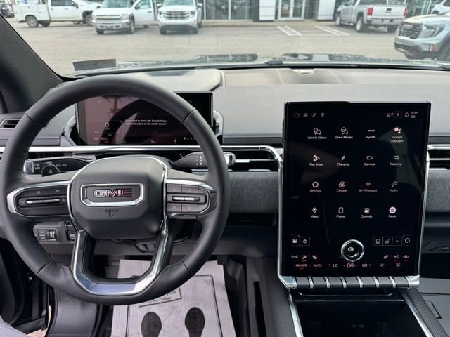 Onyx Black 2026 GMC Sierra EV Elevation AWD 1-Speed Automatic Electric Motor 11.63 Axle Ratio, 1st and 2nd Rows All-Weather Floor Liners, 22 Black Painted Aluminum Wheels, 4-Way Manual Front Passenger Seat Adjuster, 4-Wheel Disc Brakes, 6 Speakers, 6-Speaker Audio System Feature, 8-Way Power Driver Seat Adjuster, ABS brakes, Air Conditioning, Alloy wheels, AM/FM radio: SiriusXM with 360L, Auto High-beam Headlights, Auto-dimming Rear-View mirror, Automatic temperature control, Blind Zone Steering Assist, Brake assist, Bumpers: body-color, CoreTec Seating Surfaces, Delay-off headlights, Driver 2-Way Power Lumbar Seat Adjuster, Driver door bin, Driver vanity mirror, Dual front impact airbags, Dual front side impact airbags, Electronic Stability Control, Elevation Dark Package, Emblems, Emergency communication system: OnStar, Extended Range Battery Pack, Four wheel independent suspension, Front and Rear Park Assist, Front anti-roll bar, Front Bucket Seats, Front Bucket Seats with Center Console, Front dual zone A/C, Front reading lights, Fully automatic headlights, Garage door transmitter, Heated door mirrors, Heated Front Driver and Passenger Seats, Heated front seats, Heated steering wheel, Inside Rear-View Auto-Dimming Mirror, Low tire pressure warning, Manual Folding Heated Outside Mirrors, Manual Tilt and Telescoping Steering Column, Navigation System, Occupant sensing airbag, Outside temperature display, Overhead airbag, Overhead console, Panic alarm, Passenger door bin, Passenger vanity mirror, Power door mirrors, Power driver seat, Power steering, Power windows, Preferred Equipment Group 3SC, Premium audio system: Premium GMC Infotainment System, Radio data system, Radio: 16.8 Diagonal Premium GMC Infotainment System, Rain sensing wipers, Rear 60/40 Folding Bench Seat, Rear fog lights, Rear reading lights, Rear seat center armrest, Rear step bumper, Rear window defroster, Remote keyless entry, Security system, SiriusXM with 360L Trial Subscription, Speed control, Speed-sensing steering, Split folding rear seat, Sport steering wheel, Standard Suspension, Steering wheel mounted audio controls, Telescoping steering wheel, Tilt steering wheel, Traction control, Trip computer, Variably intermittent wipers, Wheels: 18 x 8.5 Aluminum Machined Face, Wheels: 22 Transit.