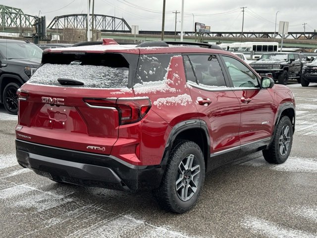 Volcanic Red Tintcoat 2026 GMC Terrain AT4 AWD 8-Speed Automatic with Overdrive 1.5L DOHC 2-Way Power Driver Lumbar Seat Adjuster, 2-Way Power Front Passenger Lumbar Seat Adjuster, 3 Years SiriusXM, 3.47 Final Drive Axle Ratio, 4-Wheel Disc Brakes, 6 Speakers, 6-Speaker Audio System Feature, 8-Way Power Driver Seat Adjuster, 8-Way Power Passenger Seat Adjuster, ABS brakes, Air Conditioning, Alloy wheels, AM/FM radio: SiriusXM, Auto High-beam Headlights, Automatic temperature control, Brake assist, Bumpers: body-color, Cloth/Core Tec Seat Trim, Compass, Convenience Package III, Delay-off headlights, Driver and Front Passenger Heated Seats, Driver door bin, Driver vanity mirror, Dual front impact airbags, Dual front side impact airbags, Electronic Stability Control, Emergency communication system: OnStar and GMC connected services capable, Four wheel independent suspension, Front All-Weather Floor Liners, Front anti-roll bar, Front Bucket Seats, Front Center Armrest, Front dual zone A/C, Front fog lights, Front Passenger 4-Way Manual Seat Adjuster, Front reading lights, Fully automatic headlights, Garage door transmitter, HD Surround Vision, Heated door mirrors, Heated front seats, Heated Rear Outboard Seats, Heated steering wheel, Illuminated entry, Low tire pressure warning, Memory Package, Navigation System, Occupant sensing airbag, Outside temperature display, Overhead airbag, Overhead console, Panic alarm, Panoramic Power Sunroof with Sunshade, Passenger door bin, Passenger vanity mirror, Power door mirrors, Power driver seat, Power Liftgate, Power steering, Power windows, Preferred Equipment Group 4SB, Radio data system, Radio: Premium GMC Infotainment System, Rain sensing wipers, Rear air conditioning, Rear anti-roll bar, Rear Camera Mirror, Rear Camera Mirror Washer, Rear Pedestrian Alert, Rear seat center armrest, Rear window defroster, Rear window wiper, Remote keyless entry, Second Row All-Weather Mat, Security system, SiriusXM with 360L Trial Subscription, Speed control, Speed-sensing steering, Split folding rear seat, Spoiler, Sport steering wheel, Steering wheel mounted audio controls, Tachometer, Technology Package II, Telescoping steering wheel, Tilt steering wheel, Traction control, Traffic Sign Recognition, Trip computer, Variably intermittent wipers, Ventilated Driver Seat, Ventilated Front Passenger Seat, Wheels: 17 Dark Machined Aluminum, Wireless Apple CarPlay/Wireless Android Auto.