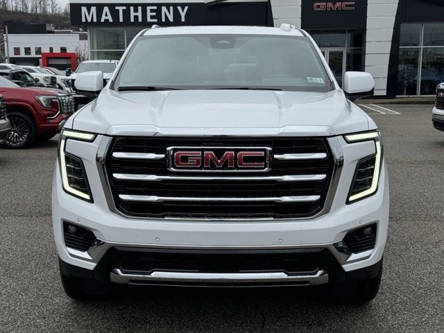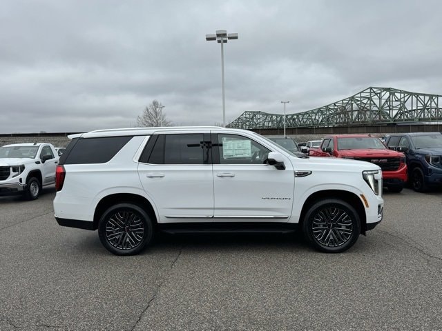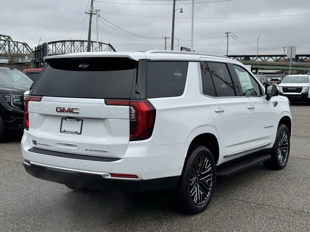 Summit White 2026 GMC Yukon Elevation 4WD 10-Speed Automatic with Overdrive EcoTec3 5.3L V8 10 Speakers, 1st and 2nd Rows All-Weather Floor Liners, 22 6-Spoke Low Gloss Black Wheels, 3 Years SiriusXM, 3.23 Rear Axle Ratio, 3rd Row All-Weather Floor Liners, 3rd row seats: split-bench, 4-Wheel Disc Brakes, ABS brakes, Air Conditioning, All-Weather Cargo Mat, Alloy wheels, AM/FM radio: SiriusXM with 360L, Apple CarPlay/Android Auto, Audio memory, Auto High-beam Headlights, Auto-dimming door mirrors, Auto-dimming Rear-View mirror, Automatic temperature control, Bodyside moldings, Bose 10-Speaker Surround with CenterPoint, Brake assist, Bumpers: body-color, Compass, CoreTech/Perforated Leather-Appointed Seating, Delay-off headlights, Driver door bin, Driver vanity mirror, Dual front impact airbags, Dual front side impact airbags, Electronic Stability Control, Emergency communication system: OnStar and GMC connected services capable, Exterior Parking Camera Rear, Floor Console, Floor Liner Package, Four wheel independent suspension, Front anti-roll bar, Front Bucket Seats, Front Center Armrest, Front dual zone A/C, Front fog lights, Front reading lights, Fully automatic headlights, Garage door transmitter, Heated door mirrors, Heated Driver and Front Passenger Seats, Heated front seats, Heated rear seats, Heated steering wheel, Illuminated entry, Low tire pressure warning, Memory seat, Navigation system: GMC Connected Navigation, Occupant sensing airbag, Outside temperature display, Overhead airbag, Overhead console, Panic alarm, Passenger door bin, Passenger vanity mirror, Power door mirrors, Power driver seat, Power Liftgate, Power passenger seat, Power Release 2nd Row Bucket Seats, Power steering, Power windows, Preferred Equipment Group 4SA, Premium Smooth Ride Suspension, Radio: 16.8 Diagonal Premium GMC Infotainment System, Rain sensing wipers, Rear air conditioning, Rear anti-roll bar, Rear reading lights, Rear seat center armrest, Rear window defroster, Rear window wiper, Remote keyless entry, Security system, SiriusXM with 360L, Speed control, Speed-sensing steering, Split folding rear seat, Spoiler, Steering wheel mounted audio controls, Tachometer, Telescoping steering wheel, Tilt steering wheel, Traction control, Trip computer, Turn signal indicator mirrors, Variably intermittent wipers, Voltmeter, Wheels: 20 x 9 Machined and Painted, Wheels: 22 x 9 Steel Interim.