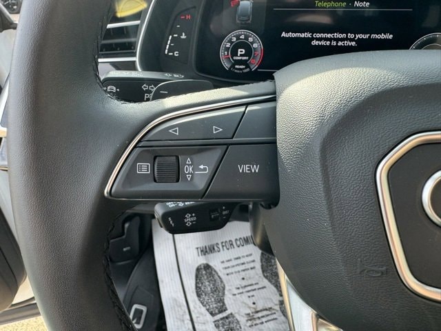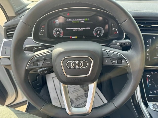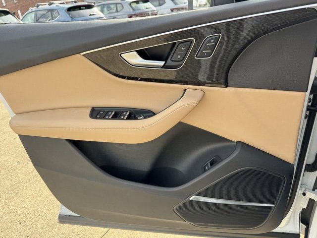 10 Speakers, 3.204 Axle Ratio, 3rd row seats: bench, 4-Wheel Disc Brakes, ABS brakes, Air Conditioning, Alloy wheels, AM/FM radio: SiriusXM w/ 360L, Auto High-beam Headlights, Auto-dimming door mirrors, Auto-dimming Rear-View mirror, Automatic temperature control, Brake assist, Bumpers: body-color, Compass, Delay-off headlights, Driver door bin, Driver vanity mirror, Dual front impact airbags, Dual front side impact airbags, Electronic Stability Control, Emergency communication system: Audi connect CARE, Exterior Parking Camera Rear, Four wheel independent suspension, Front anti-roll bar, Front Bucket Seats, Front Center Armrest, Front dual zone A/C, Front fog lights, Front reading lights, Fully automatic headlights, Garage door transmitter: HomeLink, Genuine wood door panel insert, Heated door mirrors, Heated Front Bucket Seats, Heated front seats, Illuminated entry, Leather Seating Surfaces, Leather Shift Knob, Leather steering wheel, Low tire pressure warning, Memory seat, Navigation system: Audi MMI Navigation plus with Touch Response, Occupant sensing airbag, Outside temperature display, Overhead airbag, Overhead console, Panic alarm, Passenger door bin, Passenger vanity mirror, Power door mirrors, Power driver seat, Power Liftgate, Power moonroof: Panoramic, Power passenger seat, Power steering, Power windows, Radio data system, Radio: Audi Sound System, Rain sensing wipers, Rear air conditioning, Rear anti-roll bar, Rear fog lights, Rear reading lights, Rear seat center armrest, Rear side impact airbag, Rear window defroster, Rear window wiper, Reclining 3rd row seat, Remote keyless entry, Roof rack: rails only, Security system, Speed control, Speed-sensing steering, Split folding rear seat, Spoiler, Steering wheel memory, Steering wheel mounted audio controls, Tachometer, Telescoping steering wheel, Tilt steering wheel, Traction control, Trip computer, Turn signal indicator mirrors, Variably intermittent wipers, Wheels: 19 5-Arm-Star Design.