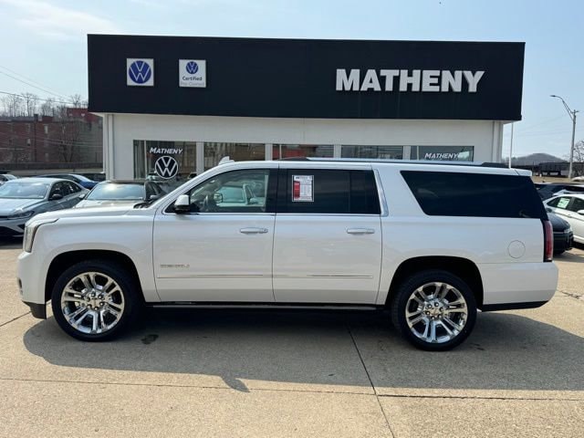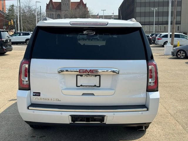 The Matheny Family has been in business for over 100 years, buy with confidence!!!!Odometer is 1983 miles below market average!10 Speakers, 1st & 2nd Rows All-Weather Floor Liner (LPO), 3.23 Rear Axle Ratio, 3rd Row DVD Screen, 3rd row seats: split-bench, 4-Wheel Antilock Disc Brakes, 4-Wheel Disc & 4-Wheel VAC Power Antilock Brakes, 4-Wheel Disc Brakes, 5 Auxiliary 12-volt Power Outlets, ABS brakes, Adaptive suspension, Adjustable pedals, Advanced Adaptive Cruise Control, Air Conditioning, Alloy wheels, AM/FM radio: SiriusXM, Apple CarPlay/Android Auto, Auto High-beam Headlights, Auto-dimming door mirrors, Auto-dimming Rear-View mirror, Automatic temperature control, Black Assist Steps w/Chrome Strip, Bodyside moldings, Bose Active Noise Cancellation, Bose Centerpoint Surround Sound Audio System, Brake assist, Bumpers: body-color, CD Player, CD player, Compass, Delay-off headlights, Denali Ultimate Package, Driver door bin, Driver vanity mirror, Dual front impact airbags, Dual front side impact airbags, Electronic Stability Control, Emergency communication system: OnStar and GMC connected services capable, Enhanced Driver Alert Package, Enhanced Security Package, Exterior Parking Camera Rear, Forward Automatic Braking, Forward Collision Alert, Front anti-roll bar, Front Bucket Seats, Front Center Armrest, Front dual zone A/C, Front fog lights, Front reading lights, Front wheel independent suspension, Full-Feature Reclining Bucket Seats, Fully automatic headlights, Garage door transmitter, Genuine wood console insert, Genuine wood dashboard insert, Genuine wood door panel insert, Hands Free Power Programmable Rear Liftgate, Heads-Up Display, Heated & Ventilated Driver & Front Passenger Seats, Heated door mirrors, Heated front seats, Heated Leather-Wrapped Steering Wheel, Heated rear seats, Heated steering wheel, High-Intensity Discharge Headlights, Illuminated entry, Inside Rear-View Auto-Dimming Mirror, Integrated Trailer Brake Controller, IntelliBeam Automatic High Beam On/Off, Lane Change Alert w/Side Blind Zone Alert, Lane Keep Assist w/Lane Departure Warning, Leather Shift Knob, License Plate Front Mounting Package, Low Speed Forward Automatic Braking, Low tire pressure warning, Magnetic Ride Control Suspension Package, Memory Package, Memory seat, Navigation System, Occupant sensing airbag, Open Road Package, Outside temperature display, Overhead airbag, Overhead console, Panic alarm, Passenger door bin, Passenger vanity mirror, Passive Entry System, Pedal memory, Perforated Leather-Appointed Seat Trim, Polished Exhaust Tip, Power door mirrors, Power driver seat, Power Liftgate, Power passenger seat, Power Release 2nd Row Bucket Seats, Power steering, Power Tilt & Telescopic Steering Column, Power Tilt-Sliding Sunroof w/Express-Open/Close, Power windows, Power-Adjustable Pedals For Accelerator & Brake, Preferred Equipment Group 5SA, Premium audio system: IntelliLink, Push Button Keyless Start, Pwr Retractable Assist Steps w/Perimeter Lighting, Radio: AM/FM/SiriusXM w/Navigation, Rain sensing wipers, Rear air conditioning, Rear anti-roll bar, Rear Cross Traffic Alert, Rear reading lights, Rear Seat Blu-Ray/DVD Entertainment System, Rear window defroster, Rear window wiper, Remote Keyless Entry, Remote keyless entry, Roof rack: rails only, Security system, SiriusXM NavTraffic, SiriusXM Radio, Speed control, Speed-sensing steering, Split folding rear seat, Spoiler, Steering wheel memory, Steering wheel mounted audio controls, Tachometer, Telescoping steering wheel, Theft-Deterrent Alarm System, Tilt steering wheel, Traction control, Trip computer, Turn signal indicator mirrors, Universal Home Remote, Variably intermittent wipers, Vehicle Inclination Sensor, Vehicle Interior Movement Sensor, Ventilated front seats, Voltmeter, Wheel Locks, Wheels: 20 x 9 Bright Machined Aluminum, Wheels: 22 x 8.5 Bright Aluminum, Wireless Charging.2019 GMC Yukon XL Denali White Frost Tricoat 4D Sport Utility 4WD 10-Spe