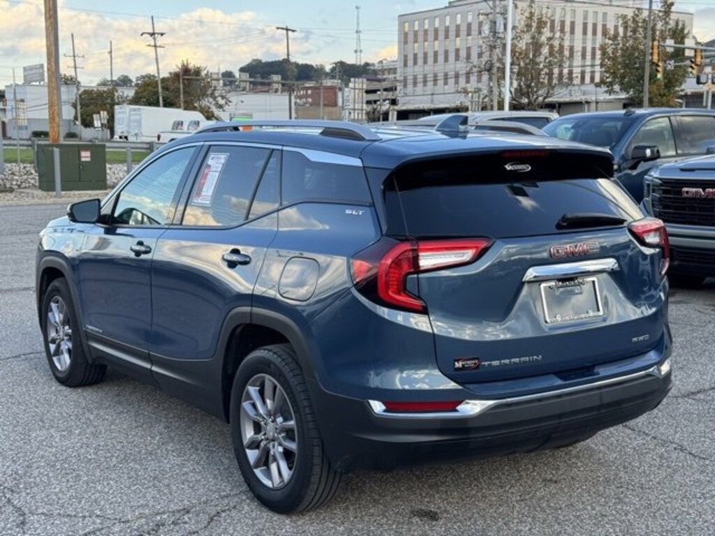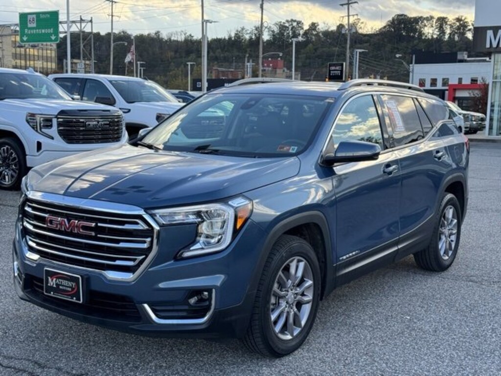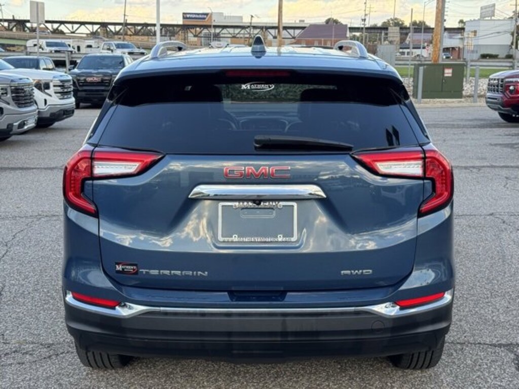 The Matheny Family has been in business for over 100 years, buy with confidence!!!!Priced below KBB Fair Purchase Price! Odometer is 7693 miles below market average! 23/28 City/Highway MPG2 USB Data Ports, 2 USB Data Ports w/SD Card Reader, 3.47 Final Drive Axle Ratio, 4-Wheel Disc Brakes, 6 Speakers, 6-Speaker Audio System Feature, 6-Way Power Front Passenger Seat, 8-Way Power Driver Seat Adjuster, ABS brakes, Air Conditioning, Alloy wheels, AM/FM radio: SiriusXM, Auto High-beam Headlights, Auto-dimming Rear-View mirror, Automatic temperature control, Bluetooth® For Phone, Brake assist, Bumpers: body-color, Cold Air Grille Shutter, Compass, Delay-off headlights, Deleted 3 Years of Remote Access, Driver & Front Passenger Heated Seats, Driver door bin, Driver vanity mirror, Dual front impact airbags, Dual front side impact airbags, Electronic Stability Control, Emergency communication system: OnStar and GMC connected services capable, Four wheel independent suspension, Front anti-roll bar, Front Bucket Seats, Front Center Armrest, Front dual zone A/C, Front fog lights, Front Passenger 2-Way Power Lumbar, Front reading lights, Fully automatic headlights, Garage door transmitter, Heated door mirrors, Heated front seats, Heated steering wheel, Illuminated entry, License Plate Front Mounting Package, Low tire pressure warning, Memory seat, Not Equipped w/Seasonal Lower Grille Cover, Occupant sensing airbag, Outside temperature display, Overhead airbag, Overhead console, Panic alarm, Passenger door bin, Passenger vanity mirror, Perforated Leather-Appointed Seat Trim, Power door mirrors, Power Driver Lumbar Control, Power driver seat, Power Liftgate, Power passenger seat, Power steering, Power windows, Preferred Equipment Group 4SA, Radio data system, Radio: GMC Infotainment Audio System w/8 Display, Rear anti-roll bar, Rear seat center armrest, Rear window defroster, Rear window wiper, Remote keyless entry, Roof rack: rails only, Security system, SiriusXM, Speed control, Speed-sensing steering, Split folding rear seat, Spoiler, Steering wheel mounted audio controls, Tachometer, Telescoping steering wheel, Tilt steering wheel, Traction control, Trip computer, Turn signal indicator mirrors, Variably intermittent wipers, Wheels: 18 x 7 Silver Painted Aluminum, Wireless Apple CarPlay/Wireless Android Auto.2024 GMC Terrain SLT Downpour Metallic 4D Sport Utility AWD 9-Speed Automatic 1.5L DOHC