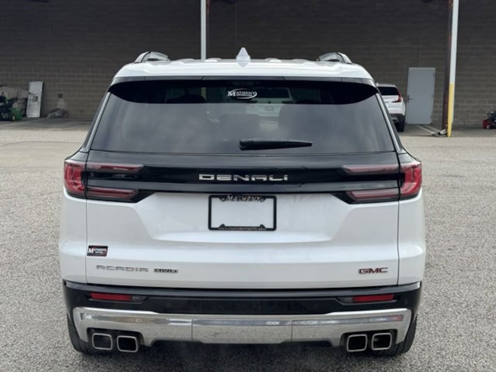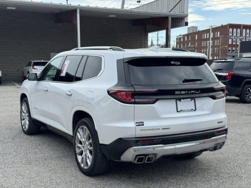 The Matheny Family has been in business for over 100 years, buy with confidence!!!!Priced below KBB Fair Purchase Price! Recent Arrival!12 Speakers, 1st and 2nd Row All-Weather Floor Liner, 3 Years SiriusXM, 3.49 Final Drive Axle Ratio, 3rd Row 60/40 Power Split-Folding Bench, 3rd Row All-Weather Floor Liner, 3rd row seats: split-bench, 4-Wheel Disc Brakes, 6-Way Power Front Passenger Seat Adjuster, 7-Passenger Seating (2-2-3 Seating Configuration), 8-Way Power Driver Seat Adjuster, ABS brakes, Air Conditioning, Alloy wheels, AM/FM radio: SiriusXM with 360L, Apple CarPlay/Android Auto, Auto High-beam Headlights, Auto-dimming door mirrors, Auto-dimming Rear-View mirror, Automatic temperature control, Bodyside moldings, Bose Performance 16-Speaker System with Sub-Woofer, Bose Premium 12-Speaker System with Sub-Woofer, Brake assist, Bumpers: body-color, Compass, Delay-off headlights, Denali Reserve Package, Driver 4-Way Power Lumbar Seat Adjuster, Driver Attention Assist, Driver door bin, Driver vanity mirror, Dual front impact airbags, Dual front side impact airbags, Electronic Stability Control, Emergency communication system: OnStar Services capable, Enhanced Automatic Parking Assist, Exterior Parking Camera Rear, Floor Liner Package, Four wheel independent suspension, Front anti-roll bar, Front Bucket Seats, Front Center Armrest, Front dual zone A/C, Front fog lights, Front Passenger 4-Way Power Lumbar Seat Adjuster, Front reading lights, Fully automatic headlights, Garage door transmitter, Genuine wood console insert, Genuine wood dashboard insert, Genuine wood door panel insert, Heads-Up Display, Heated and Ventilated Driver and Front Passenger Seats, Heated door mirrors, Heated Driver and Front Passenger Seats, Heated front seats, Heated rear seats, Heated steering wheel, Illuminated entry, Leather steering wheel, Low tire pressure warning, Memory Package, Memory seat, Navigation System, Occupant sensing airbag, Outside temperature display, Overhead airbag, Overhead console, Panic alarm, Panoramic Power Sunroof with Sunshade, Passenger door bin, Passenger vanity mirror, Perforated Leather-Appointed Seat Trim, Performance Suspension, Power door mirrors, Power driver seat, Power Liftgate, Power passenger seat, Power steering, Power windows, Preferred Equipment Group 5SB, Radio data system, Radio: 15 Diagonal Premium GMC Infotainment System, Rain sensing wipers, Rear air conditioning, Rear anti-roll bar, Rear Camera Mirror, Rear reading lights, Rear side impact airbag, Rear window defroster, Rear window wiper, Remote keyless entry, Security system, SiriusXM with 360L, Speed control, Speed-sensing steering, Split folding rear seat, Spoiler, Sport steering wheel, Steering wheel memory, Steering wheel mounted audio controls, Super Cruise, Super Cruise Package, Tachometer, Telescoping steering wheel, Tilt steering wheel, Traction control, Trip computer, Turn signal indicator mirrors, Variably intermittent wipers, Ventilated front seats, Voltmeter, Wheels: 20 x 8 Pearl Nickel Machined Aluminum, Wheels: 22 x 8.5 Pearl Nickel Machined Aluminum.2025 GMC Acadia Denali White Frost Tricoat 4D Sport Utility AWD 8-Speed Automatic 2.5L DOHC