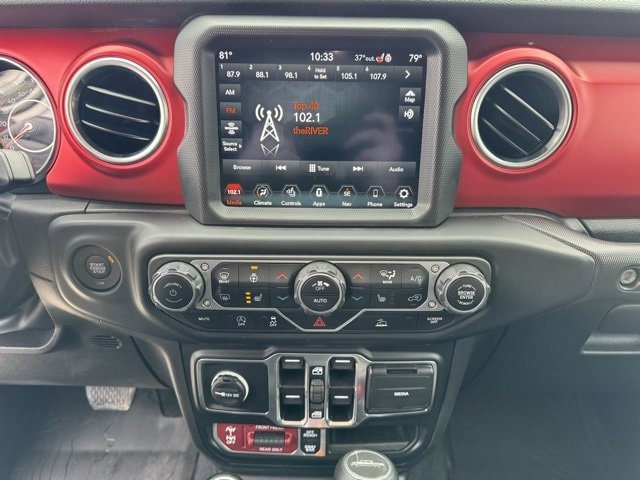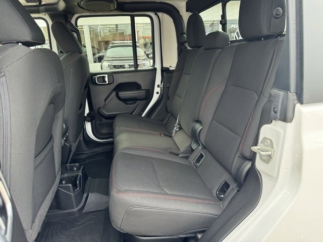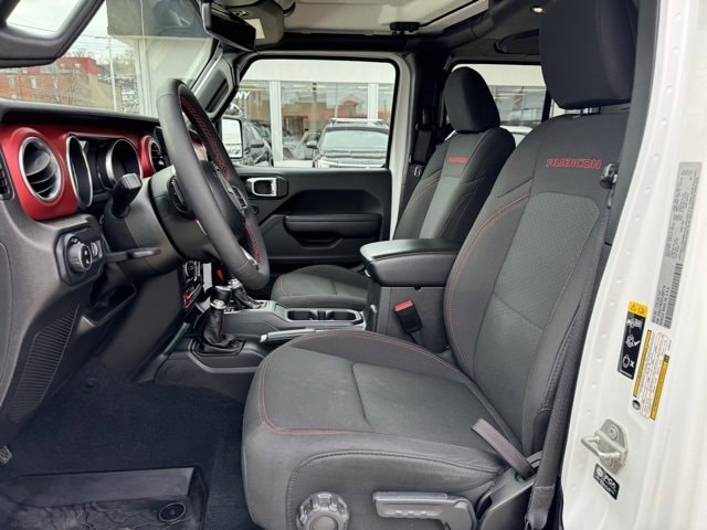 4-Wheel Disc Brakes, 4.10 Rear Axle Ratio, 9 Speakers, 97 MPH Vehicle Max Speed Calibration, ABS brakes, Air Conditioning, Alloy wheels, AM/FM radio: SiriusXM, Apple CarPlay/Android Auto, Auto-dimming Rear-View mirror, Automatic temperature control, Black 3-Piece Hard Top, Bluetooth Wireless Speaker, Body Color Fender Flares (2-Piece), Brake assist, Cold Weather Group, Compass, Delay-off headlights, Driver door bin, Driver vanity mirror, Dual front impact airbags, Dual front side impact airbags, Electronic Stability Control, Emergency communication system, Freedom Panel Storage Bag, Front anti-roll bar, Front Bucket Seats, Front Center Armrest w/Storage, Front dual zone A/C, Front fog lights, Front License Plate Bracket, Front reading lights, Fully automatic headlights, Garage door transmitter, Heated door mirrors, Heated Front Seats, Heated Steering Wheel, Illuminated entry, Integrated roll-over protection, Low tire pressure warning, MOPAR All-Weather Slush Mats, Navigation System, Occupant sensing airbag, Outside temperature display, Panic alarm, ParkView Rear Back-Up Camera, Passenger door bin, Passenger vanity mirror, Performance Suspension, Power door mirrors, Power steering, Power windows, Premium Cloth Low-Back Bucket Seats, Quick Order Package 24R Rubicon, Radio data system, Radio: Uconnect 4C Nav w/8.4 Display, Rear anti-roll bar, Rear reading lights, Rear Sliding Window, Rear Window Defroster, Remote keyless entry, Security system, Speed control, Split folding rear seat, Steering wheel mounted audio controls, Tachometer, Telescoping steering wheel, Tilt steering wheel, Traction control, Trip computer, Variably intermittent wipers, Voltmeter, Wheels: 17 x 7.5 Granite Crystal Aluminum.