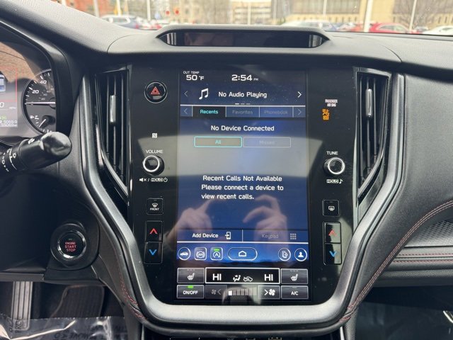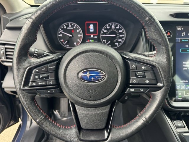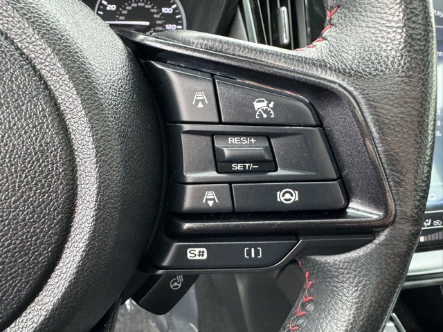 12 Speakers, 4-Wheel Disc Brakes, ABS brakes, Air Conditioning, Alloy wheels, AM/FM radio: SiriusXM with 360L, Anti-whiplash front head restraints, Auto High-beam Headlights, Auto-dimming Rear-View mirror, Automatic temperature control, Brake assist, Bumpers: body-color, Cargo Tray, Cloth Upholstery w/Red Stitching, Compass, Driver door bin, Driver vanity mirror, Dual front impact airbags, Dual front side impact airbags, Electronic Stability Control, Emergency communication system: STARLINK Safety Plus (3-year free trial), Exterior Parking Camera Rear, Four wheel independent suspension, Front anti-roll bar, Front Bucket Seats, Front Center Armrest w/Storage, Front dual zone A/C, Front fog lights, Front reading lights, Fully automatic headlights, Garage door transmitter: HomeLink, harman/kardon® Speakers, Heated door mirrors, Heated Front Bucket Seats, Heated front seats, Heated steering wheel, Illuminated entry, Knee airbag, Leather steering wheel, LED Upgrade, Low tire pressure warning, Occupant sensing airbag, Outside temperature display, Overhead airbag, Overhead console, Panic alarm, Passenger door bin, Passenger vanity mirror, Power door mirrors, Power driver seat, Power moonroof, Power steering, Power windows, Radio: Subaru STARLINK 11.6 Multimedia Plus Sys, Rear anti-roll bar, Rear Bumper Applique, Rear seat center armrest, Rear window defroster, Remote keyless entry, Security system, Speed control, Speed-sensing steering, Split folding rear seat, Spoiler, Standard Model, Steering wheel mounted audio controls, Tachometer, Telescoping steering wheel, Tilt steering wheel, Traction control, Trip computer, Turn signal indicator mirrors, Variably intermittent wipers, Wheels: 18 x 7.5J Gray Finish Aluminum-Alloy.